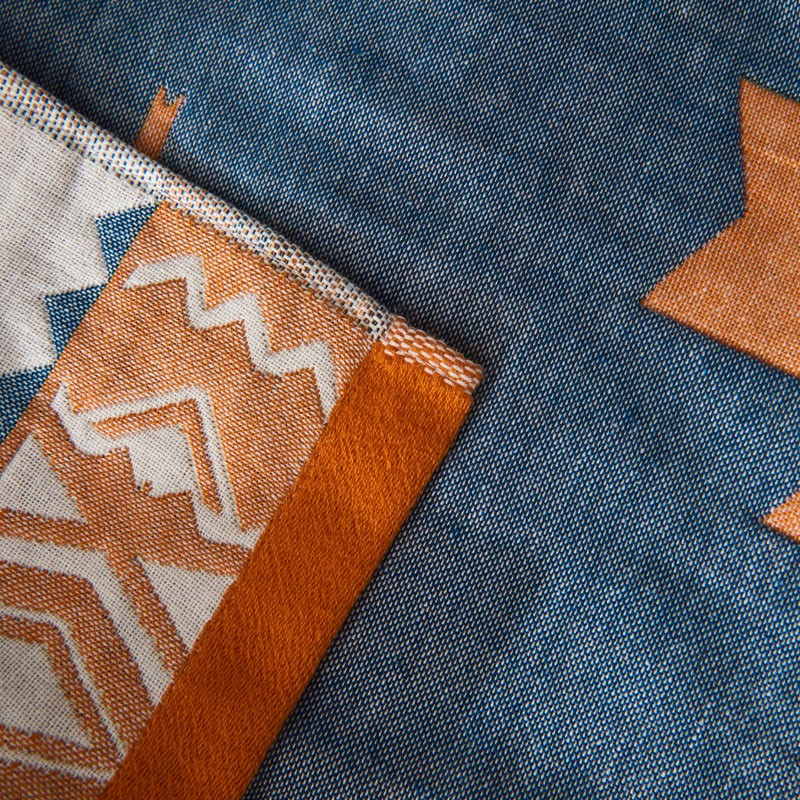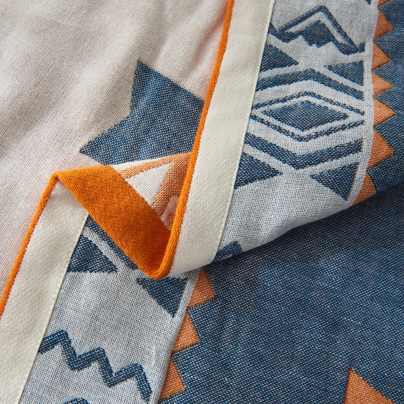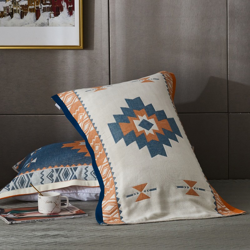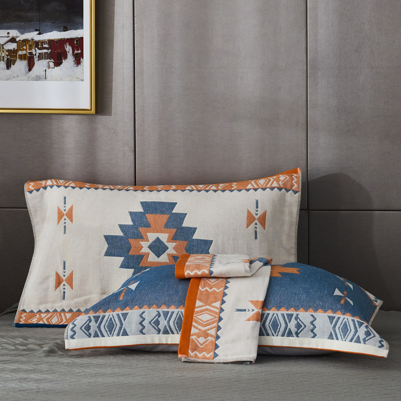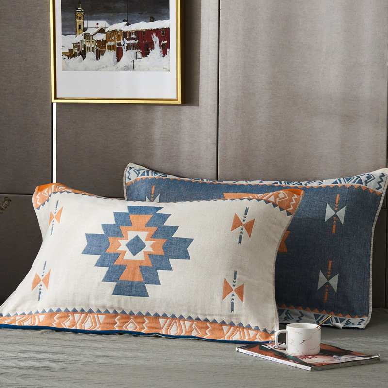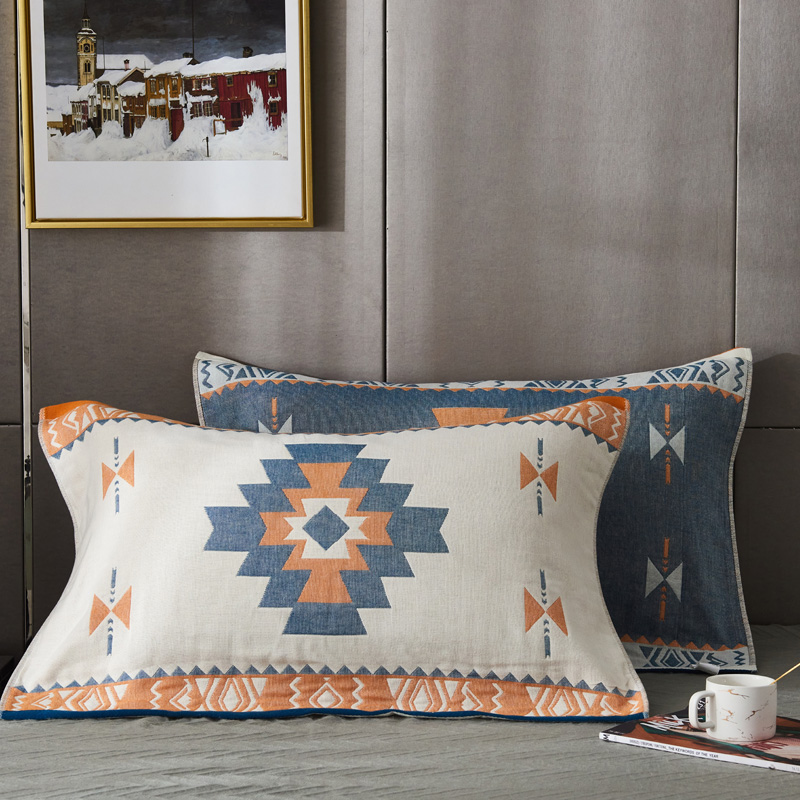 • 91家纺网 家纺一手货源 找家纺 朴尔  2022年新款波西米亚风全棉四层纱布枕巾一对装 拓卡斯蓝