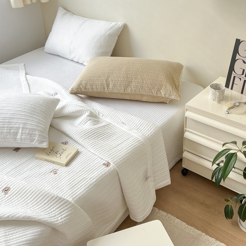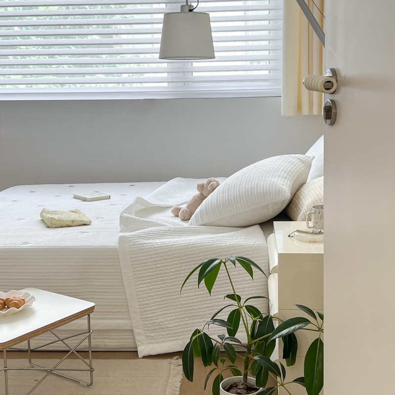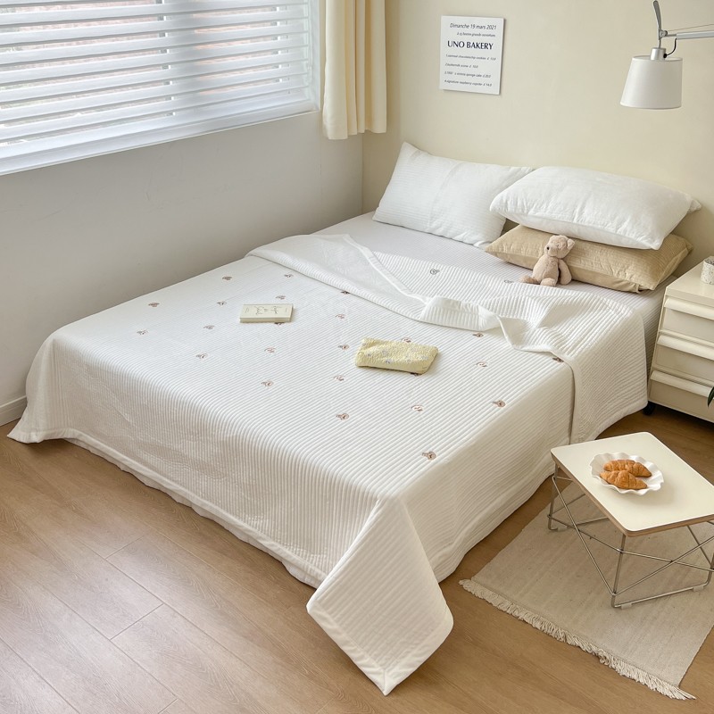 (总)漫调家纺 2025新款繁星绗缝夏被 复古风实拍,繁星白,繁星粉,繁星灰,繁星咖,繁星绿,繁星杏