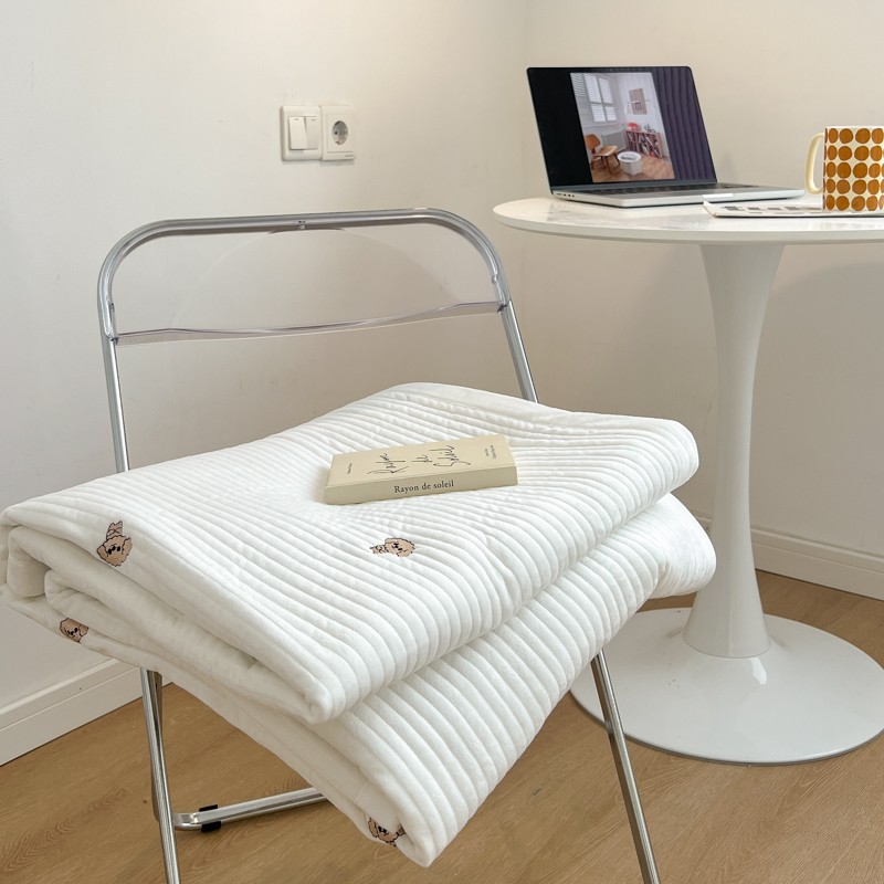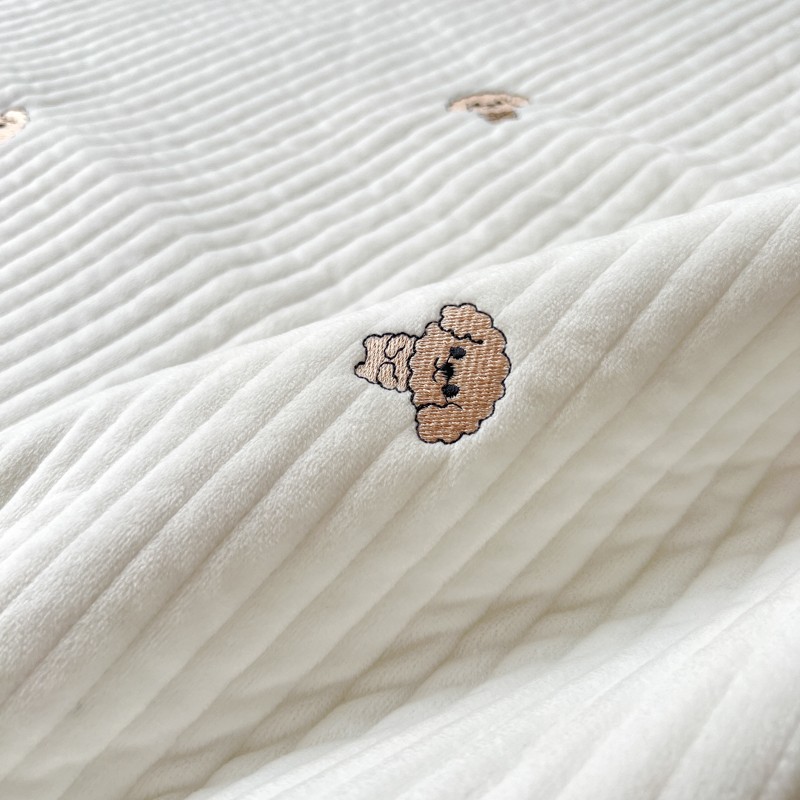 漫调 2022新款宝宝绒刺绣床盖三件套四件套 泰迪白