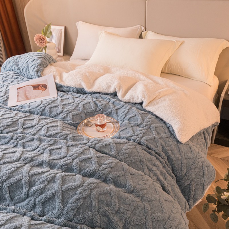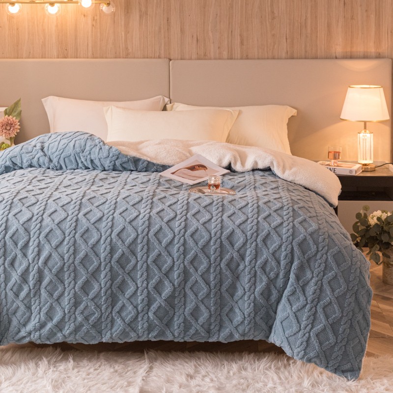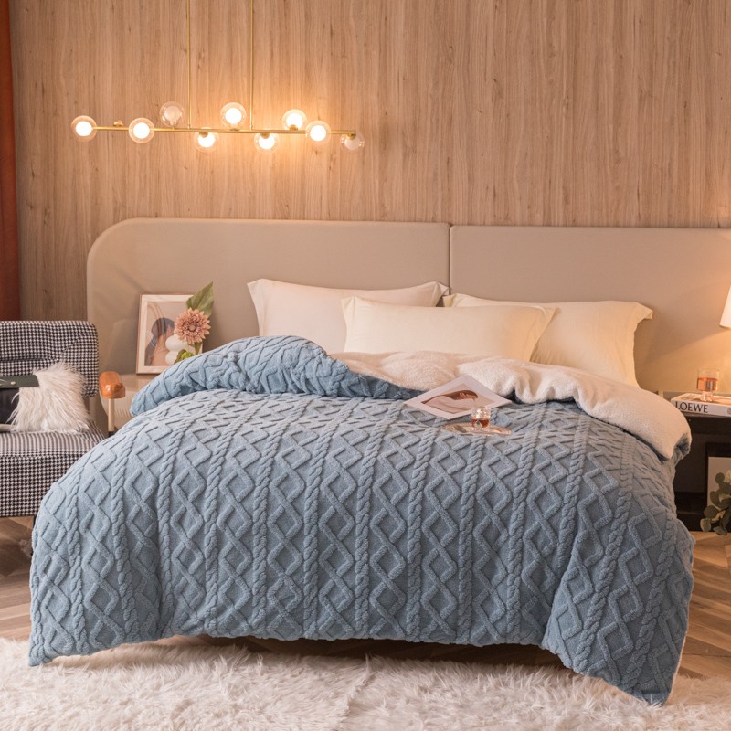 商品名称:简爱-2025舒棉绒羊羔绒单被套多功能毯 菱形茉格-暮色蓝