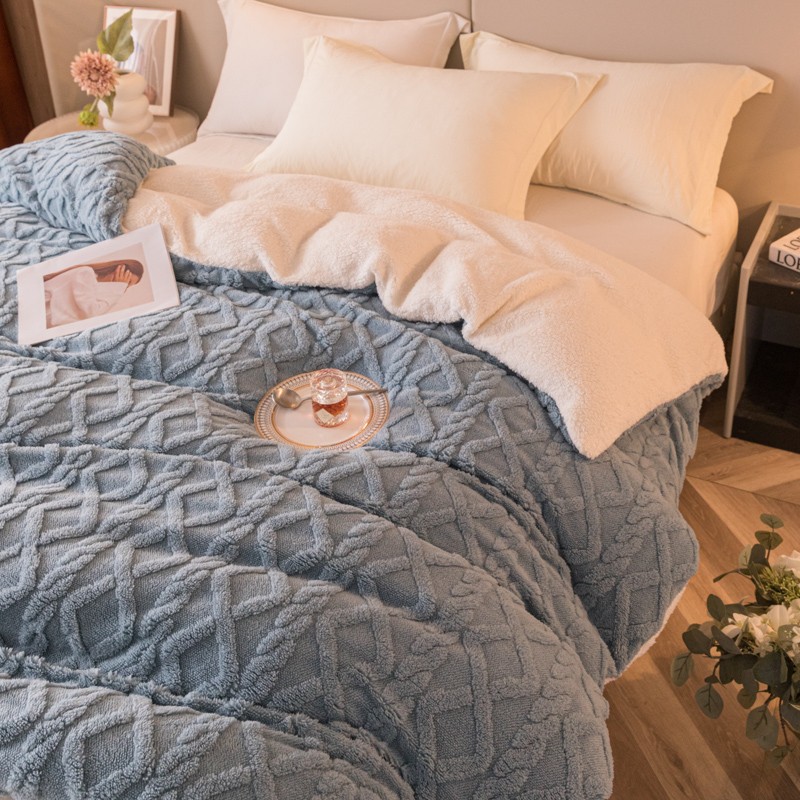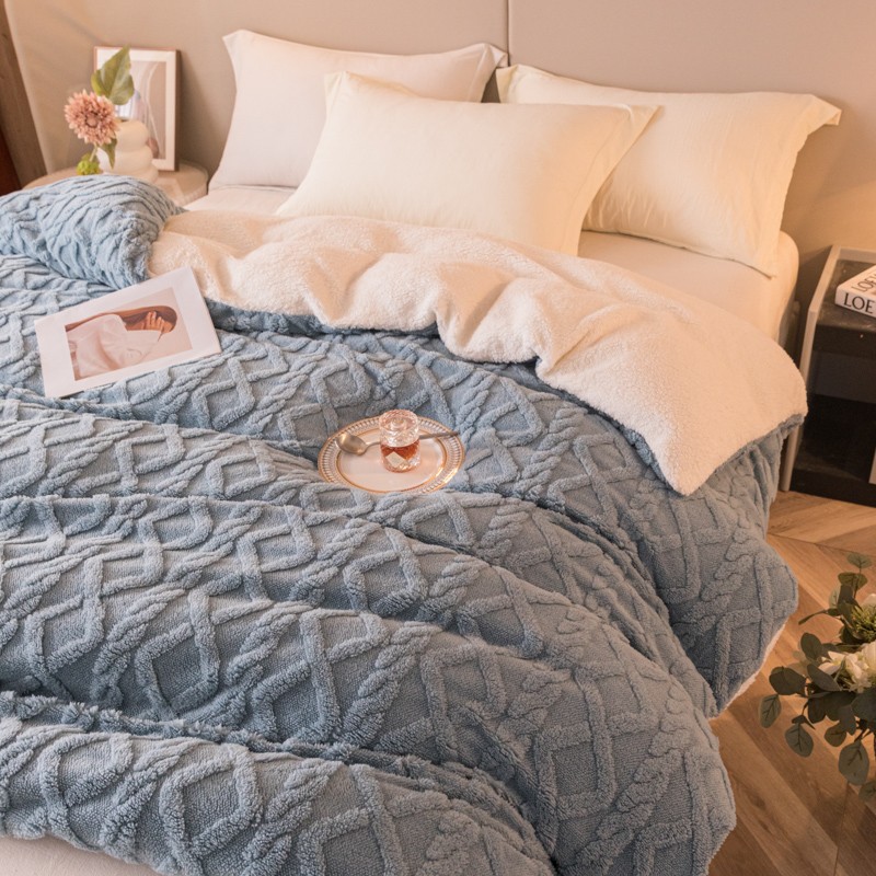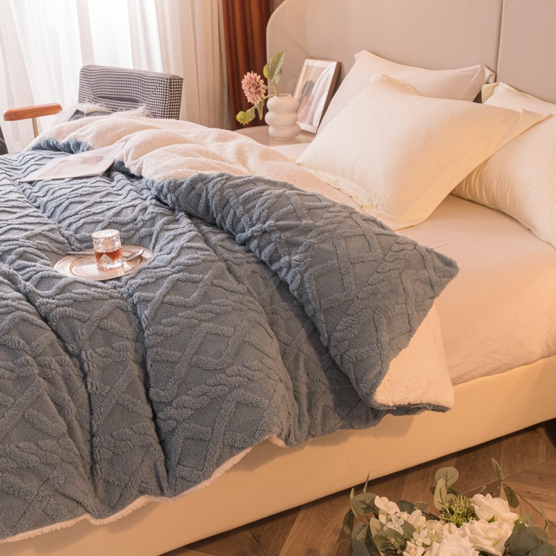简爱-2025舒棉绒羊羔绒单被套多功能毯 菱形茉格-暮色蓝