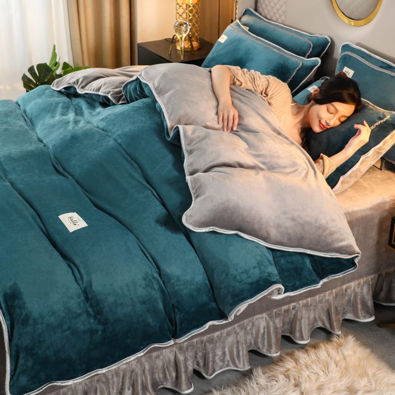 当前位置: 91家纺网 > 商品网购 > 床品套件 > 四件套 > 牛奶绒四件套 > 畅畅家纺 2022新款纯色双拼加厚牛奶绒四件套 绅士拼色