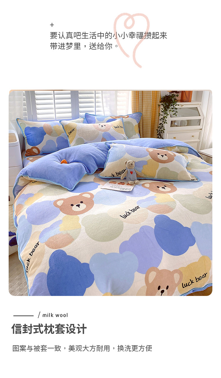 金鑫汇 2022新款牛奶绒四件套系列-单床笠 开心熊-米白
