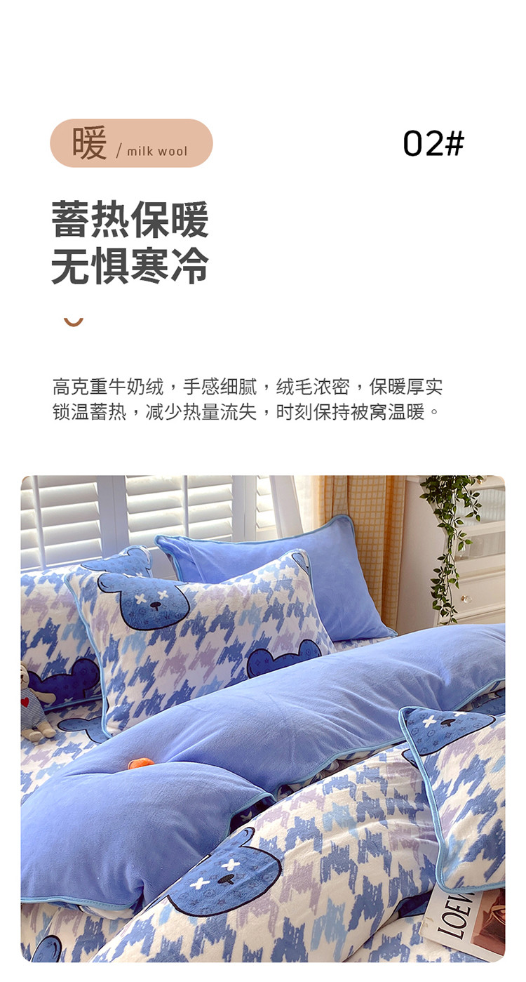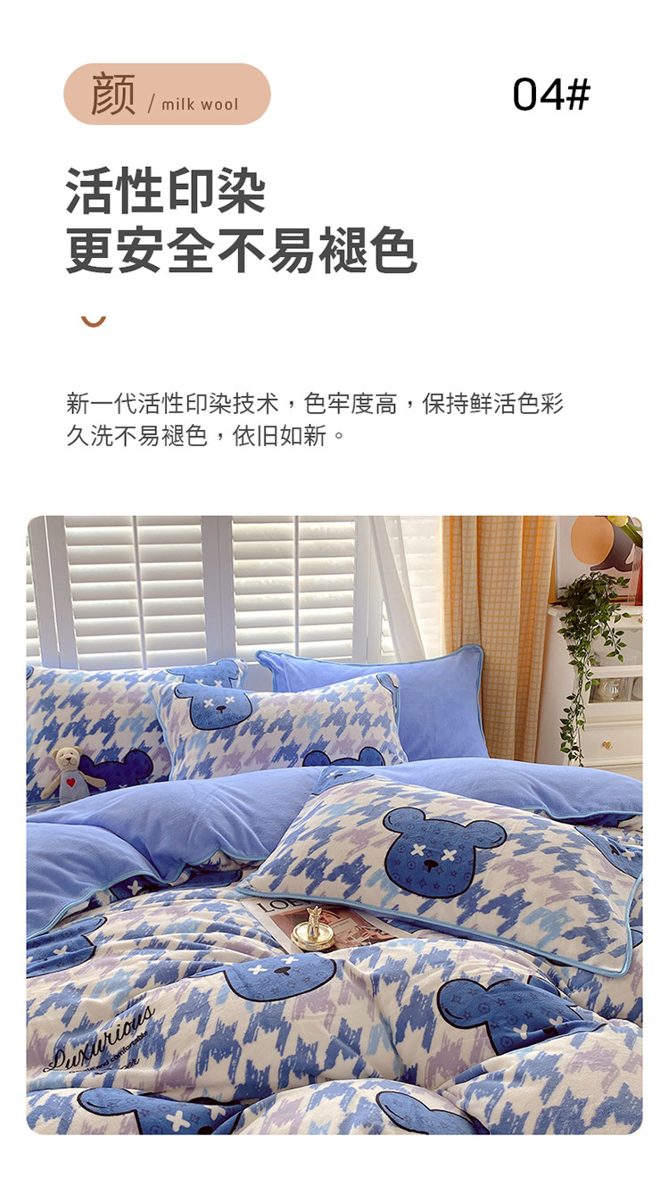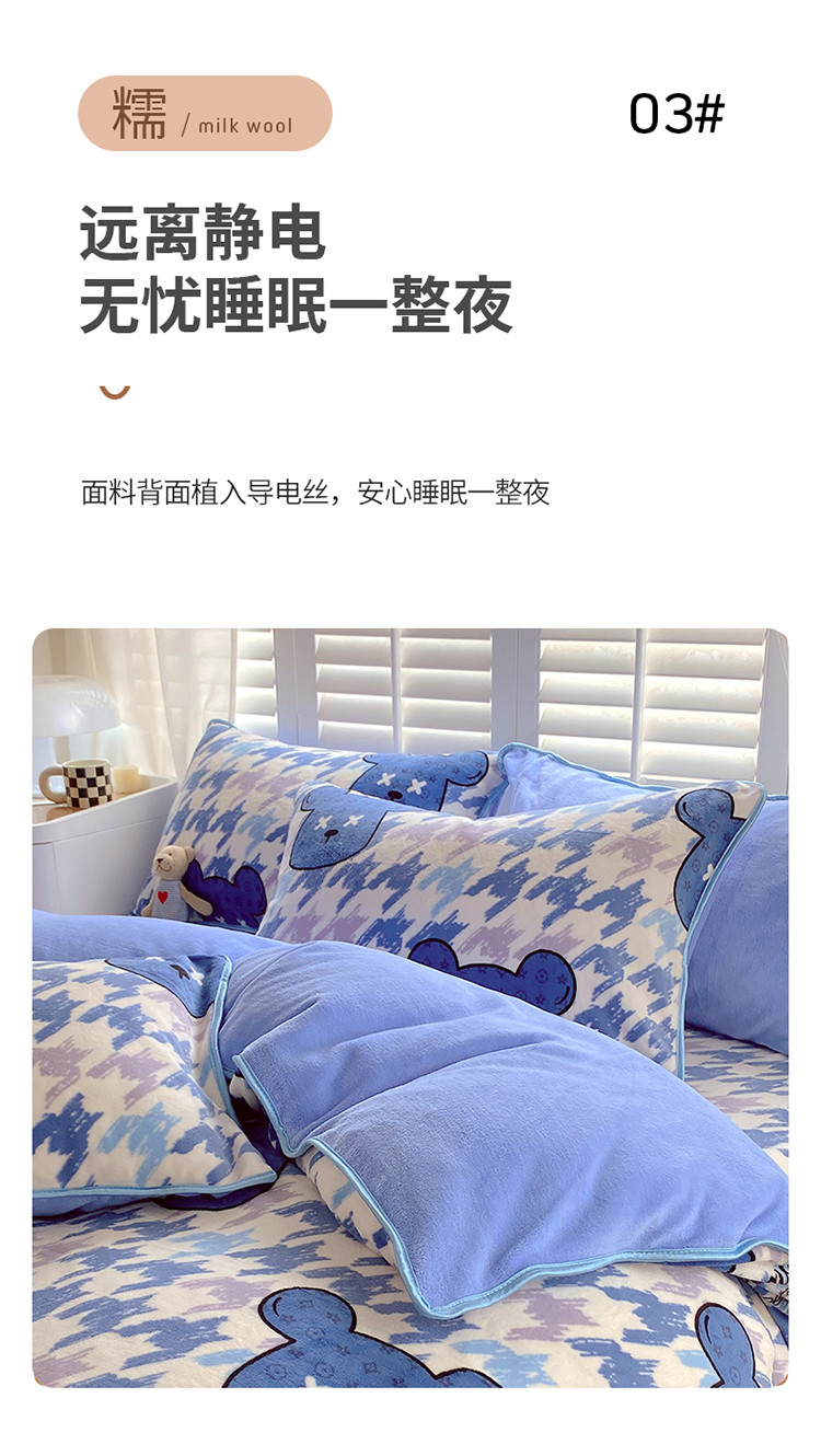 当前位置: 91家纺网 > 商品网购 > 床品套件 > 四件套 > 牛奶绒四件套 > 金鑫汇 2022新款牛奶绒四件套系列 幸运熊-兰