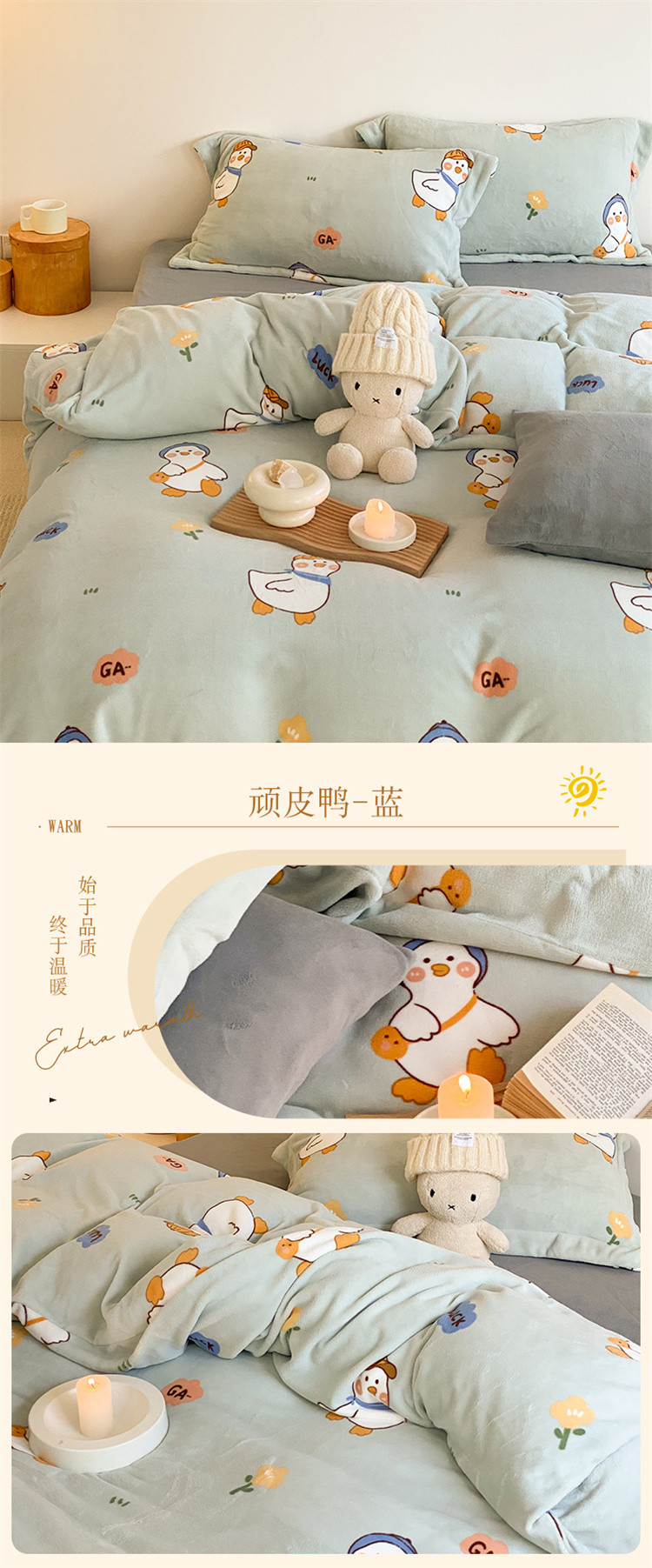 当前位置: 91家纺网 > 商品网购 > 床品套件 > 四件套 > 牛奶绒四件套 > 时光里 2022新款230g正宗全消光印花牛奶绒四件套 顽皮鸭-蓝