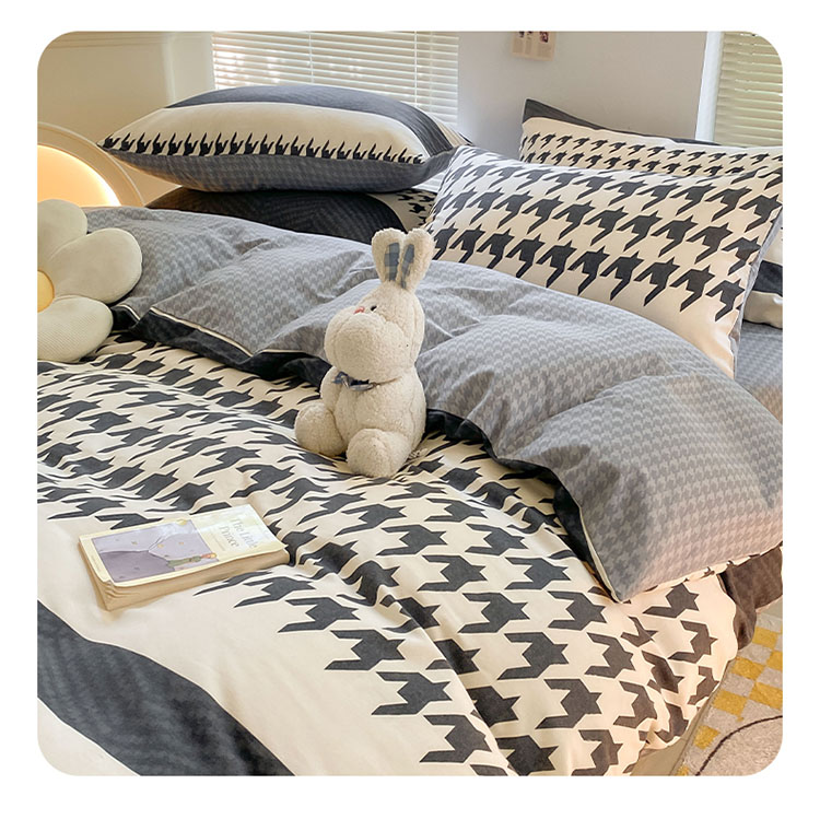 (总)雅居纺家纺 2025新款简约兔绒球球保暖舒适四件套-波点,波点-白咖,波点-粉黄,波点-咖,波点-蓝黄