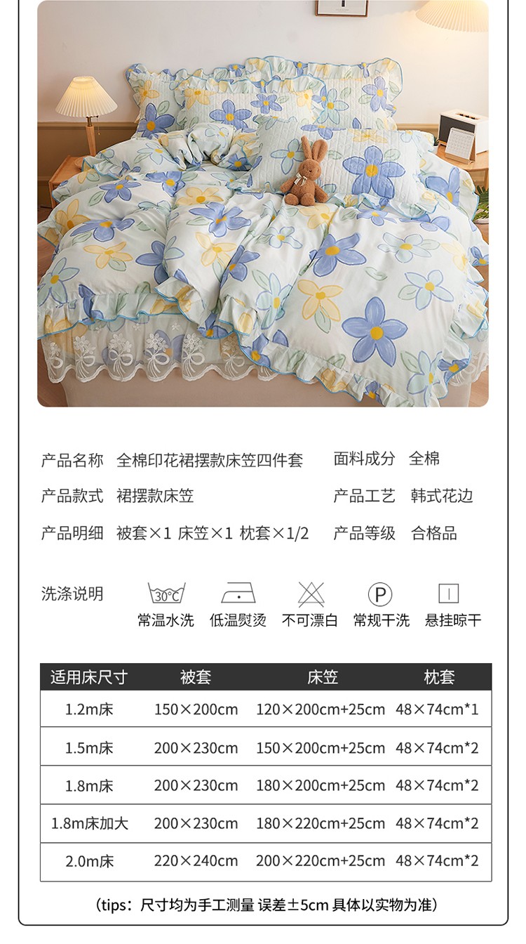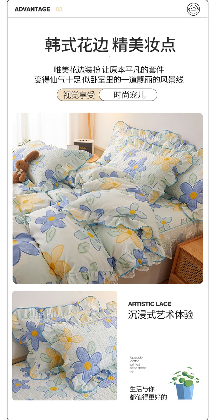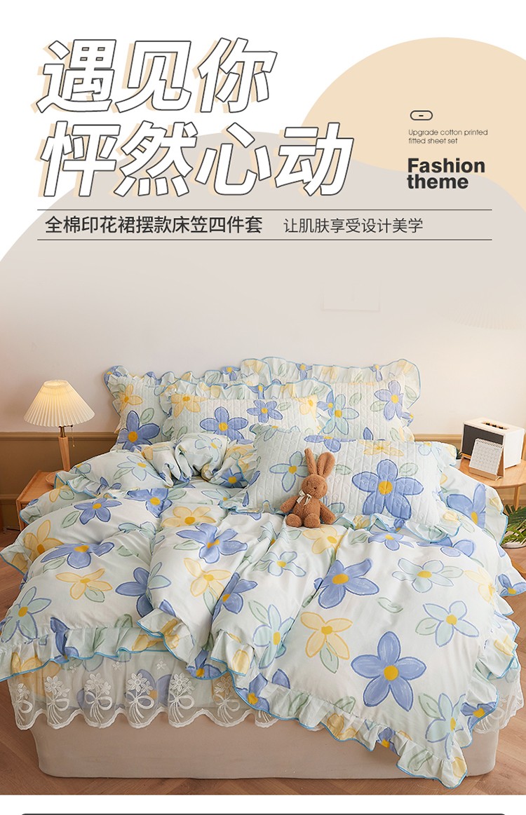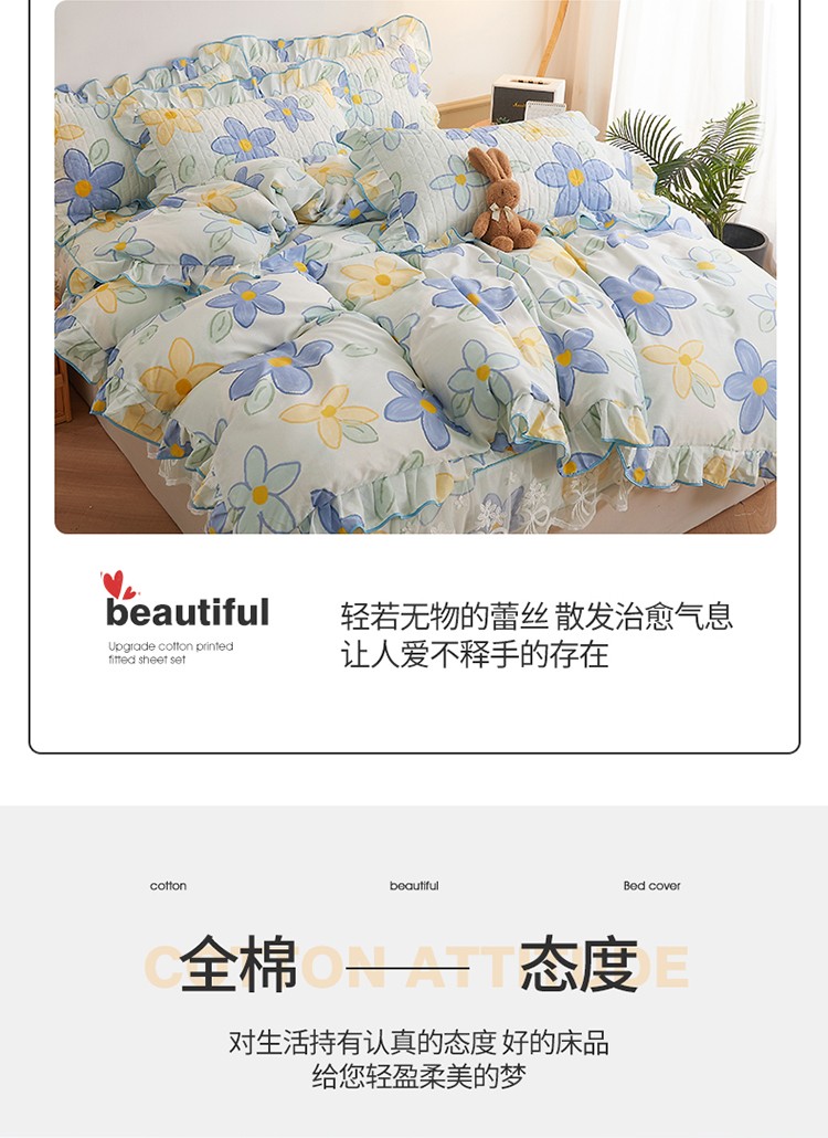 当前位置: 91家纺网 > 商品网购 > 床品套件 > 四件套 > 全棉普通四件套 > 宜凡 2023新款四季款夹棉小清新床笠四件套 千禾