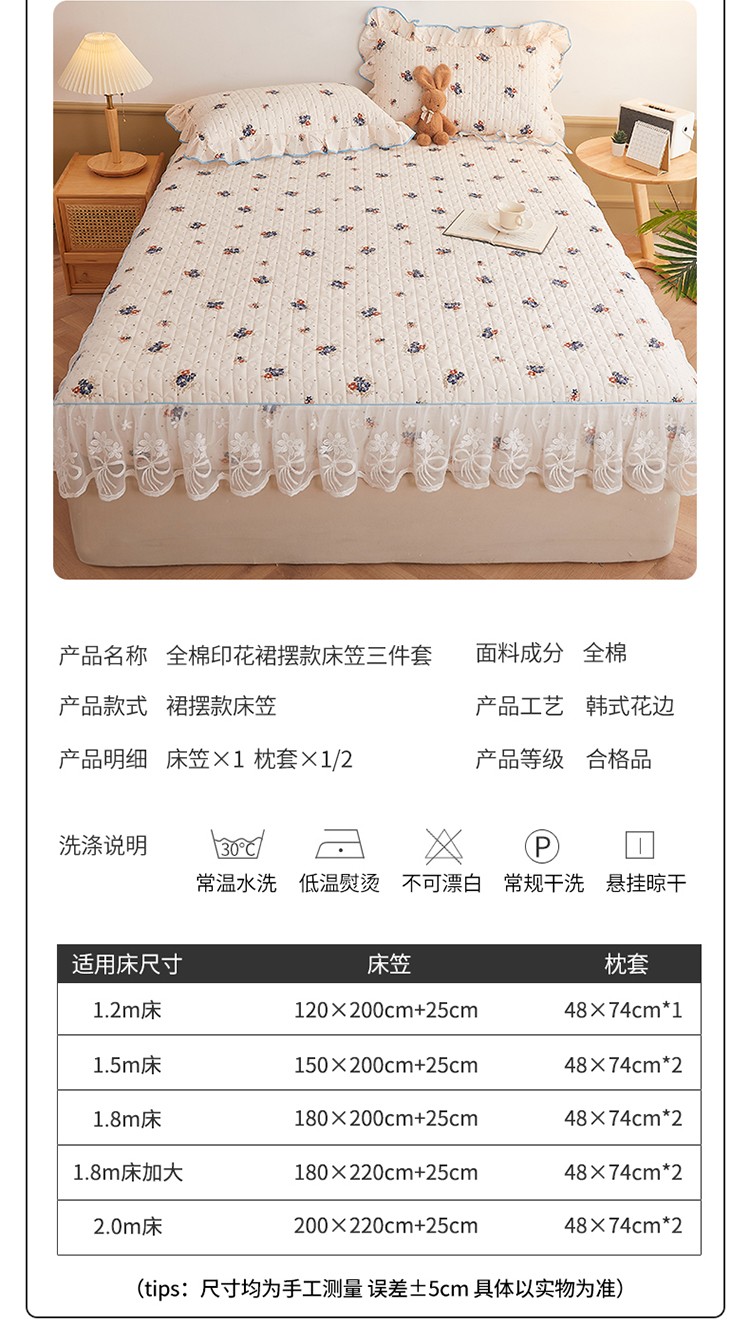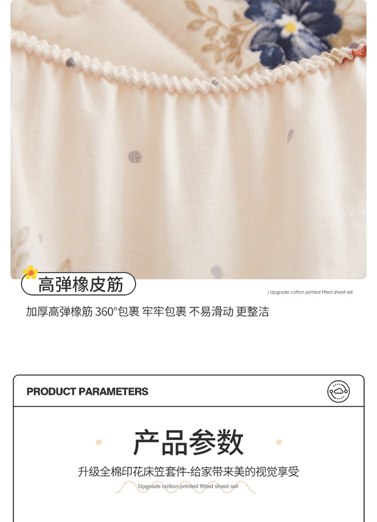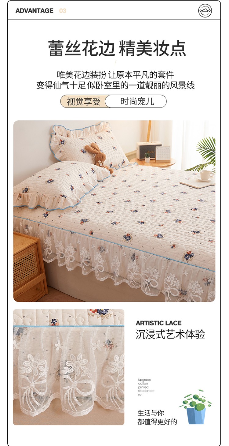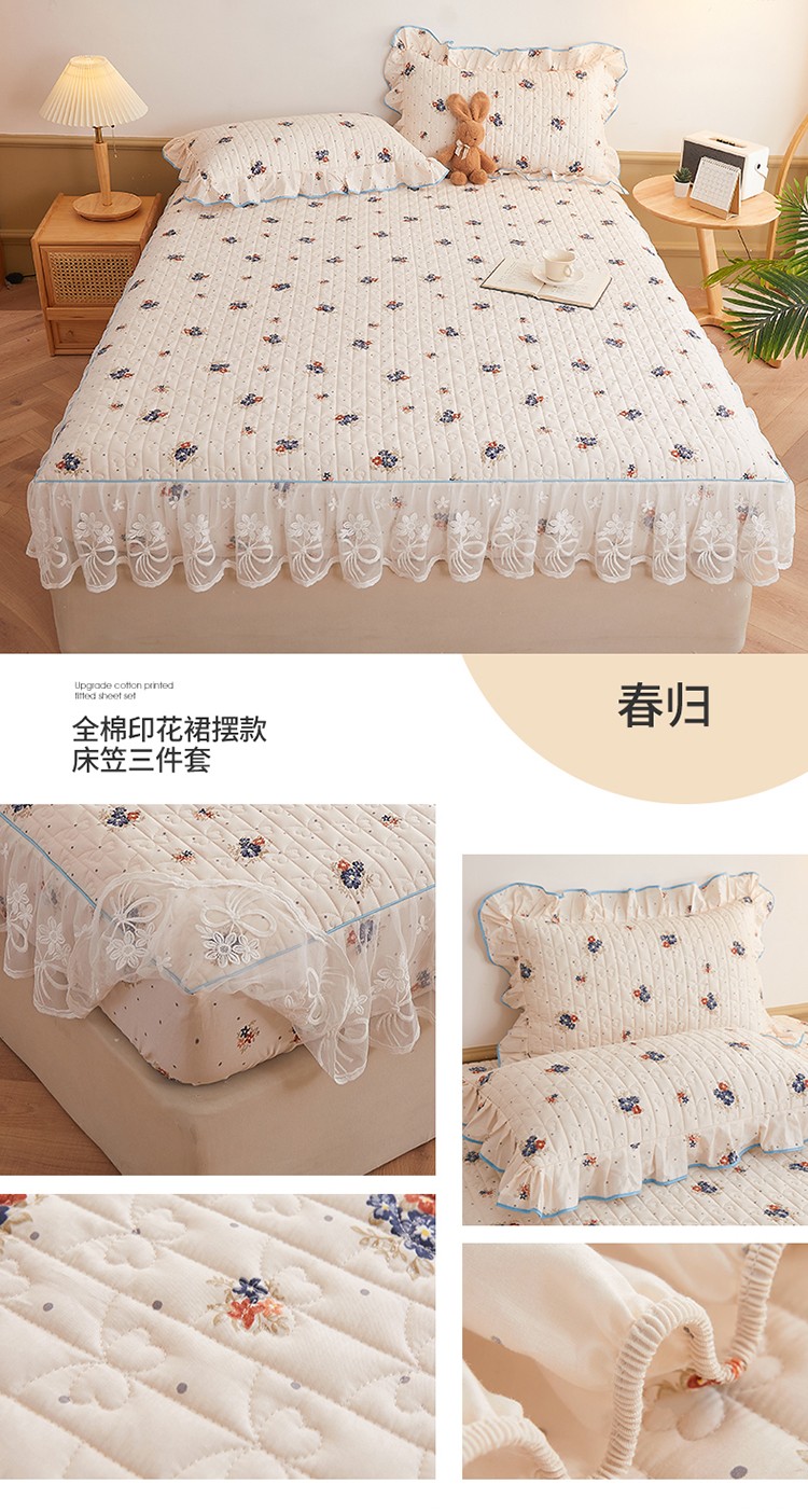 商品名称:宜凡 2023新款四季款夹棉小清新床笠三件套 春归