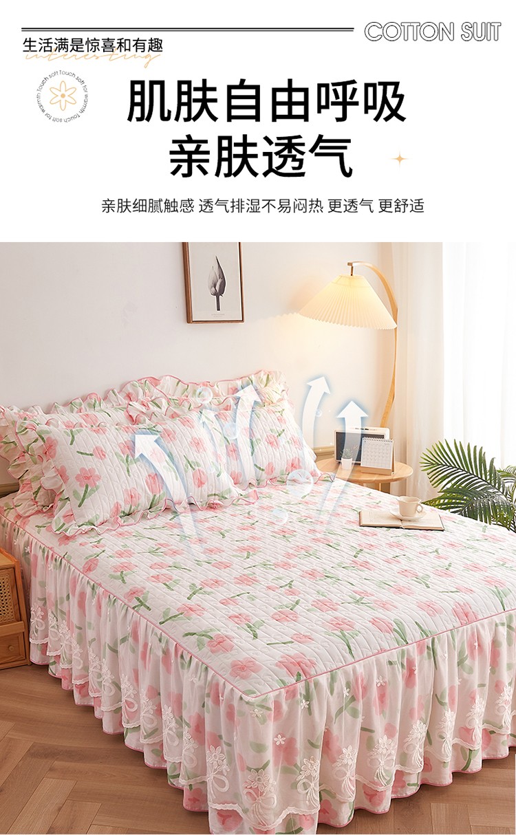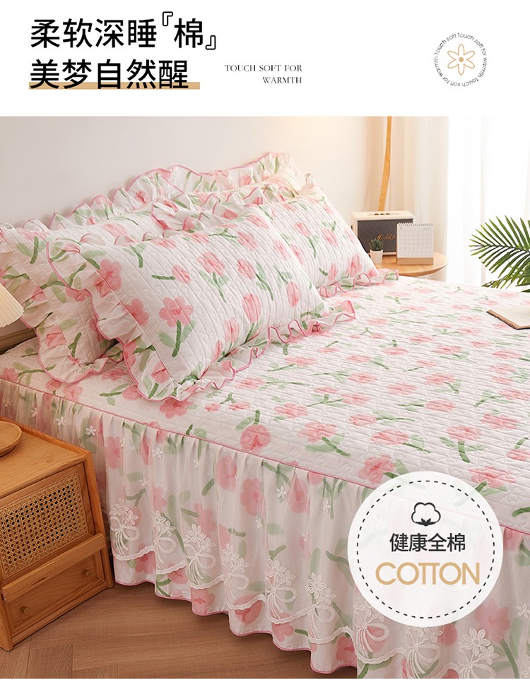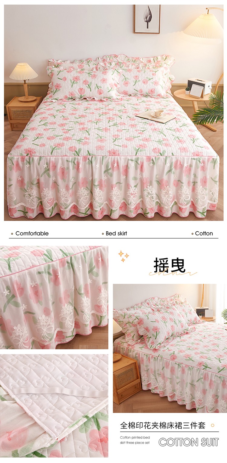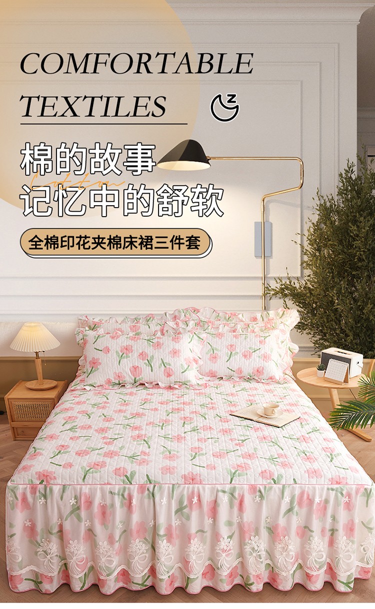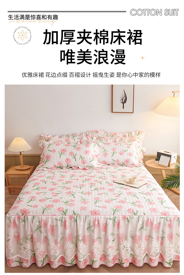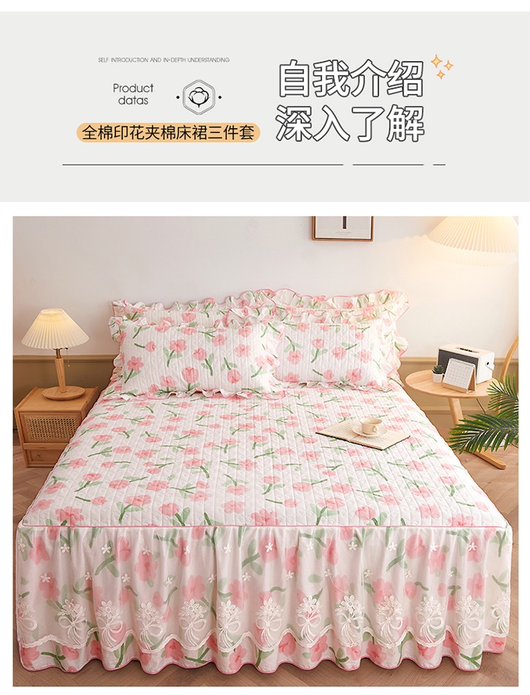 宜凡 2023新款四季款全棉夹棉床裙三件套 摇曳