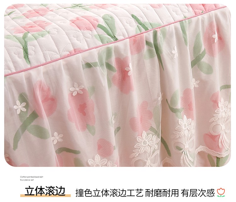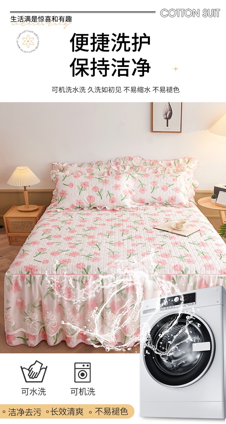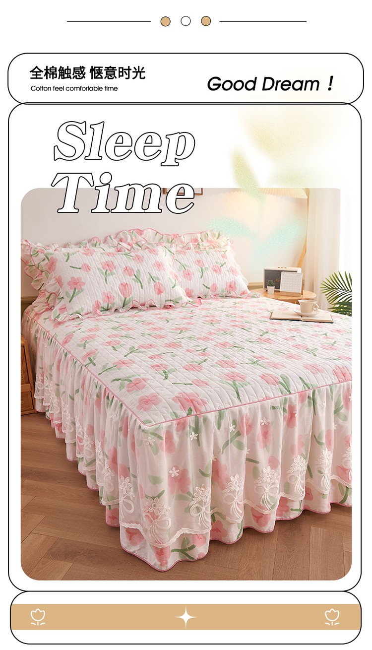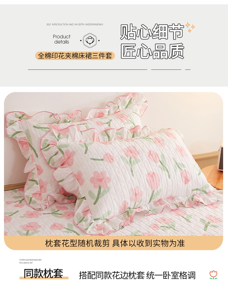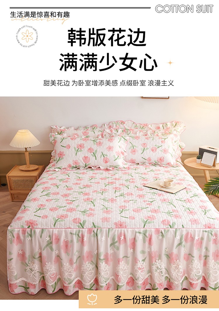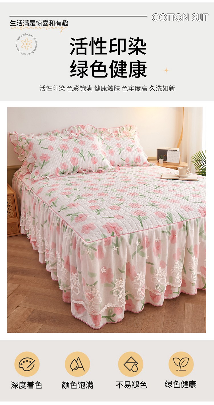 宜凡 2023新款四季款全棉夹棉床裙三件套 摇曳