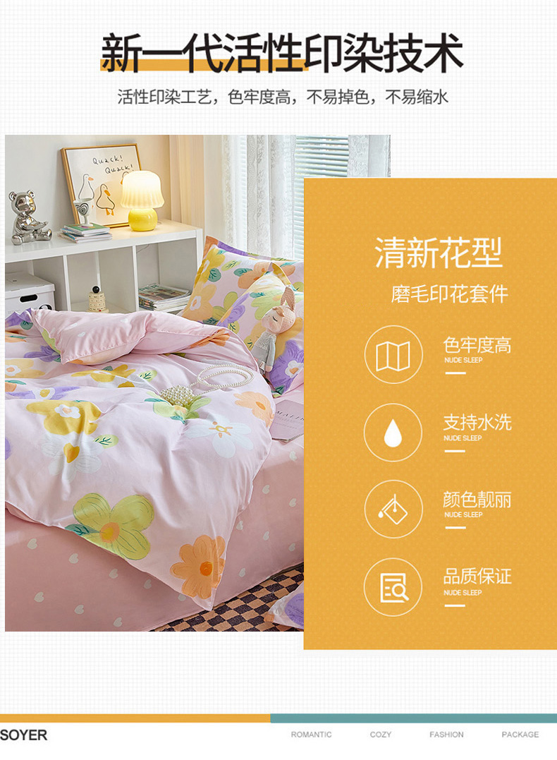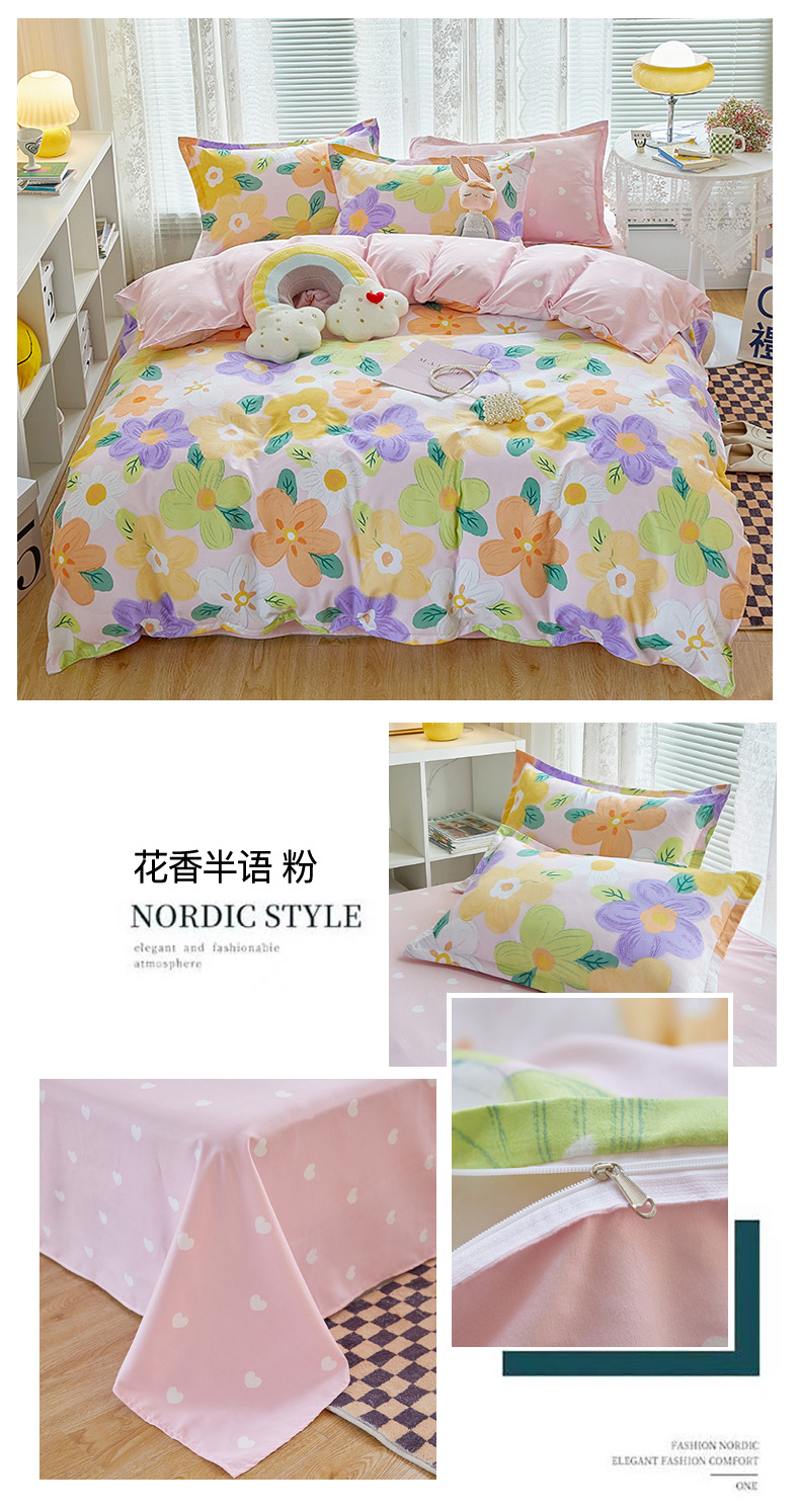 商品名称:世爵 2025新款磨毛印花单被套 花香半语粉