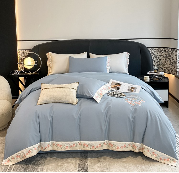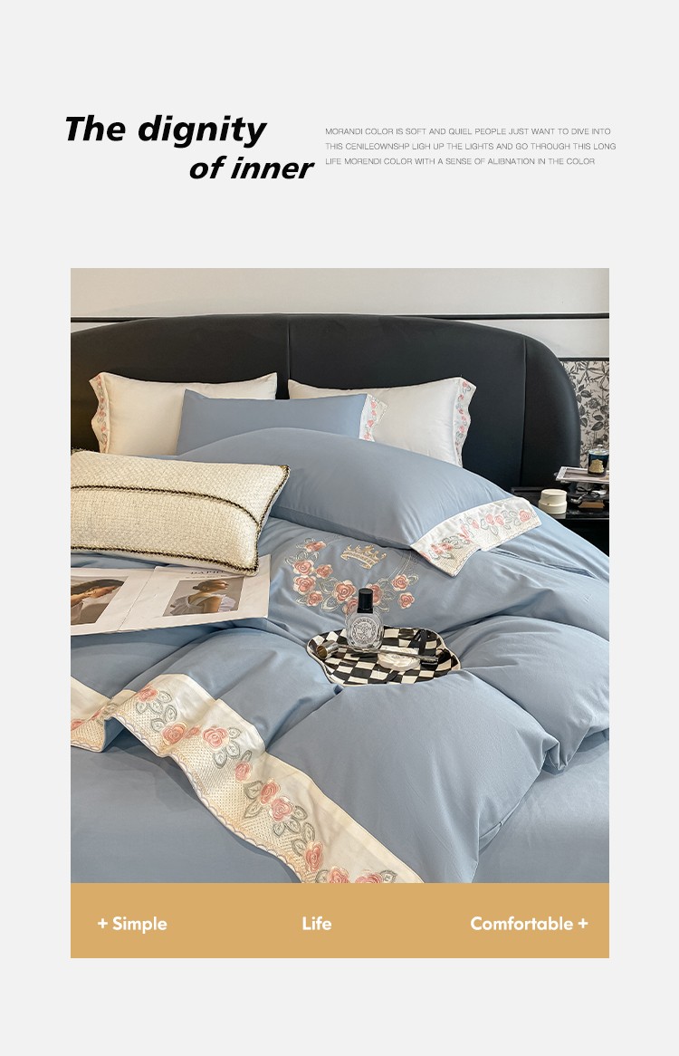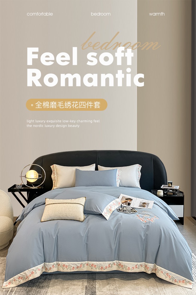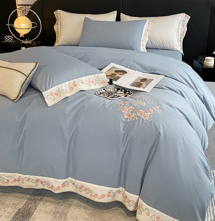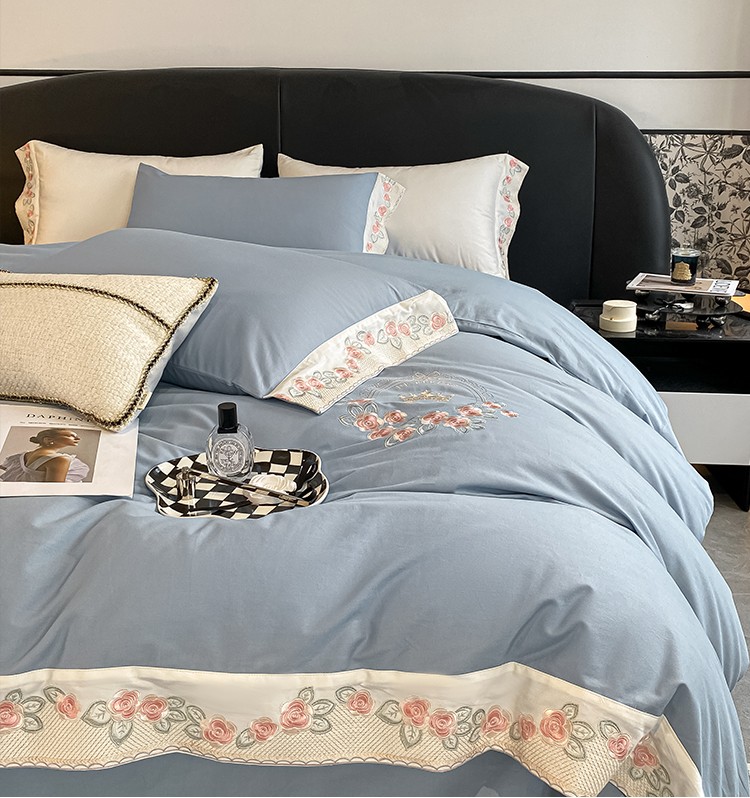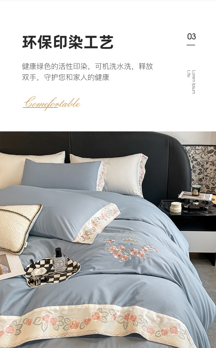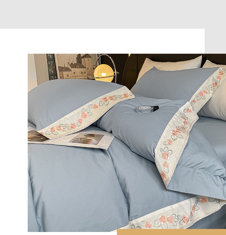 (总)理想家家纺 2025新款纯棉轻奢刺绣四件套--心愿系列场景二,心愿粉,心愿红,心愿黄,心愿蓝