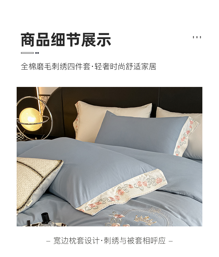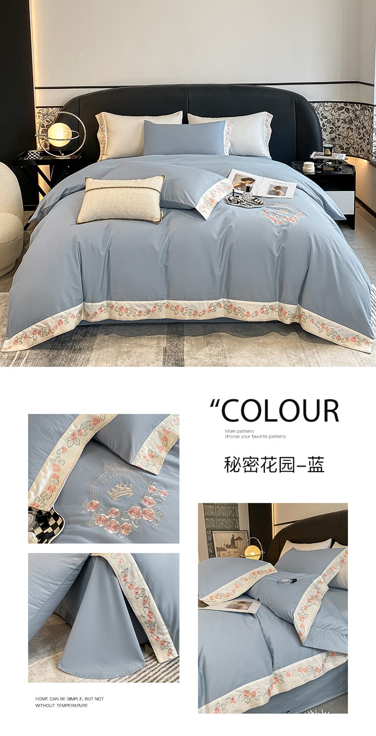 商品名称:理想家 2022新款全棉磨毛绣花四件套-秘密花园 蓝