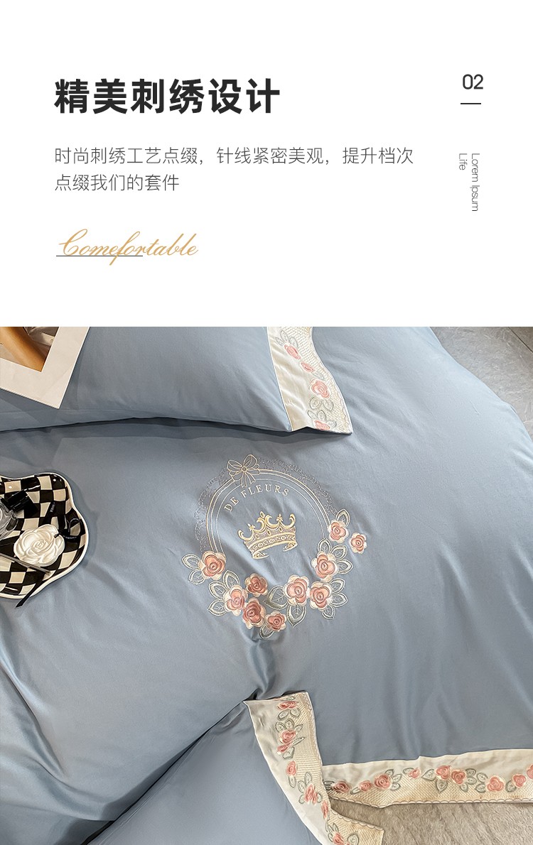 (总)理想家家纺 2025新款纯棉轻奢刺绣四件套-小秘密系列,小秘密-白,小秘密-粉,小秘密-蓝