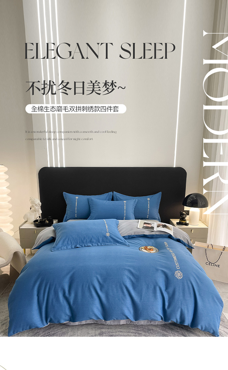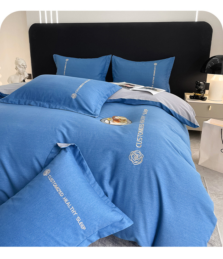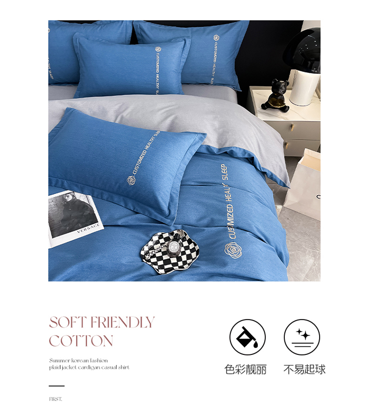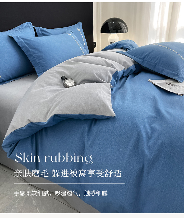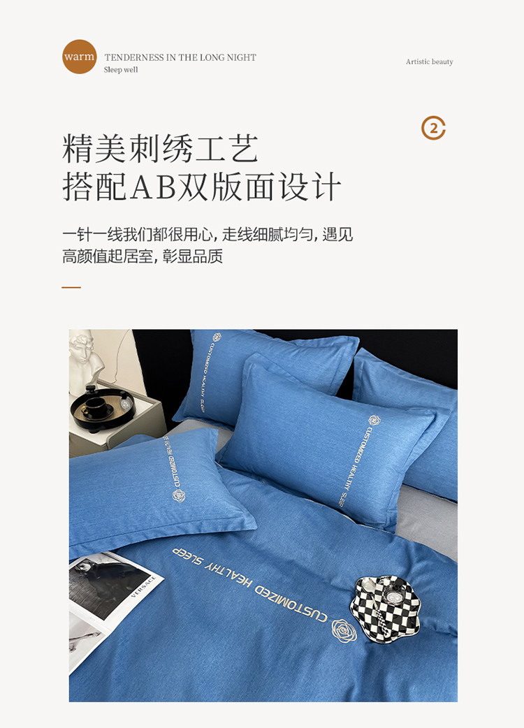 商品名称:AB家纺 2022新款全棉生态磨毛刺绣四件套 月光蓝-绅士灰