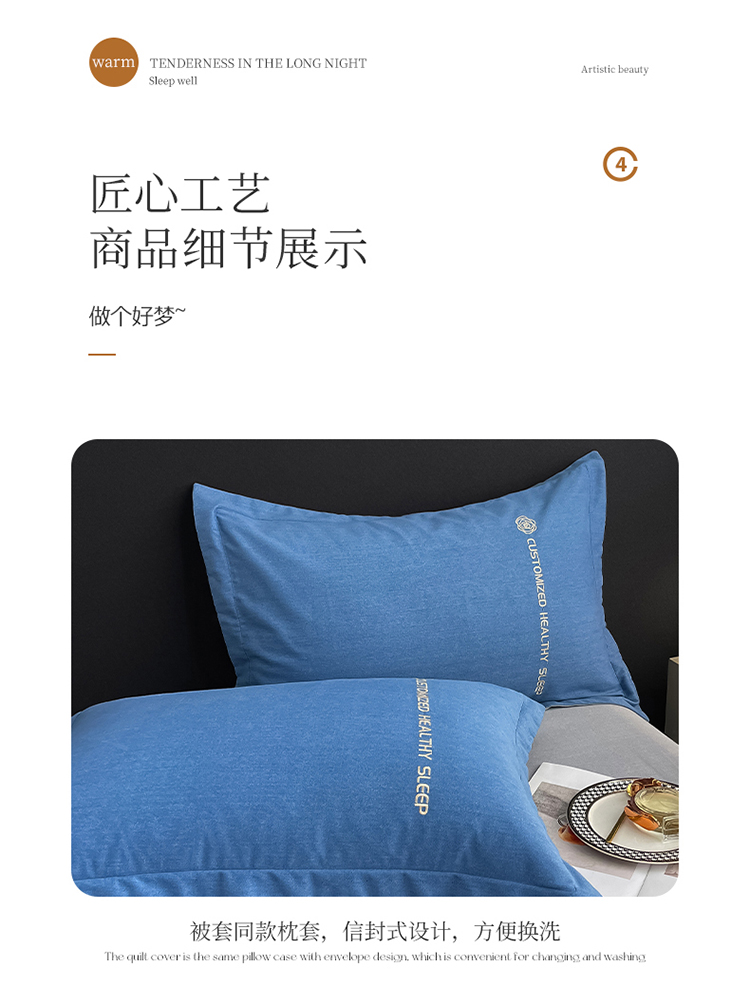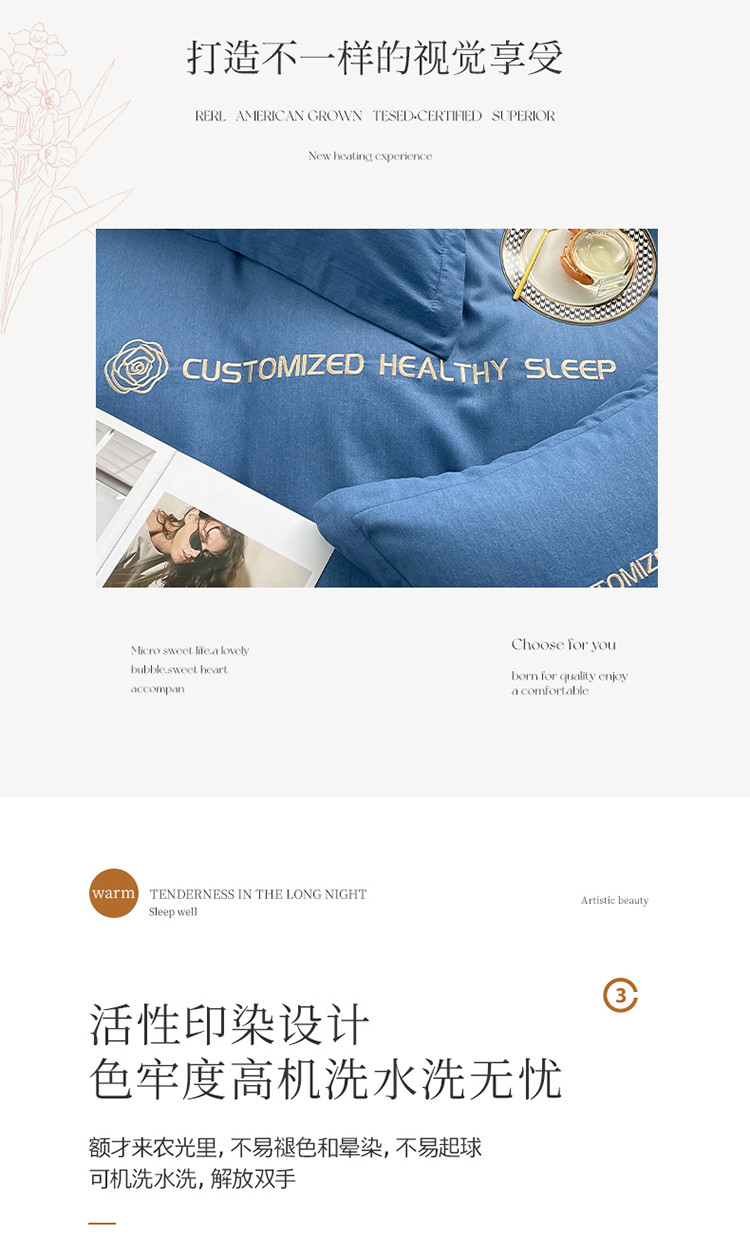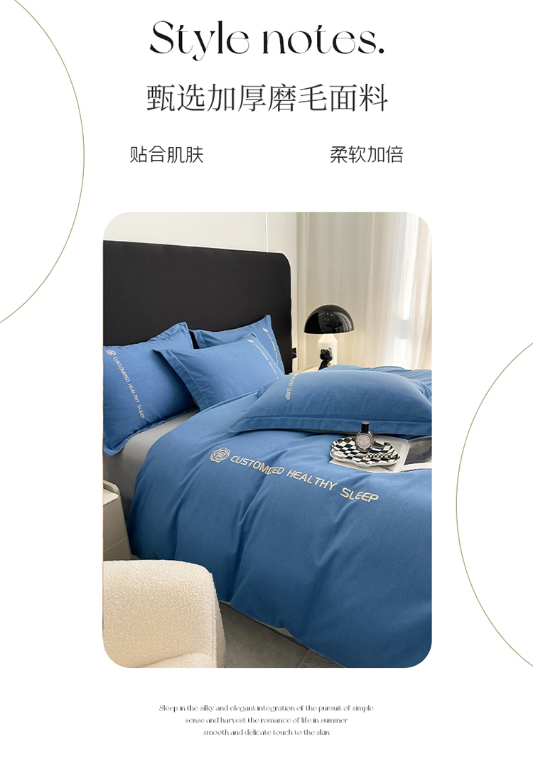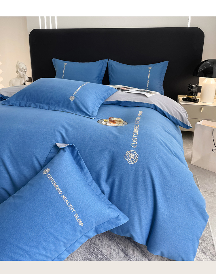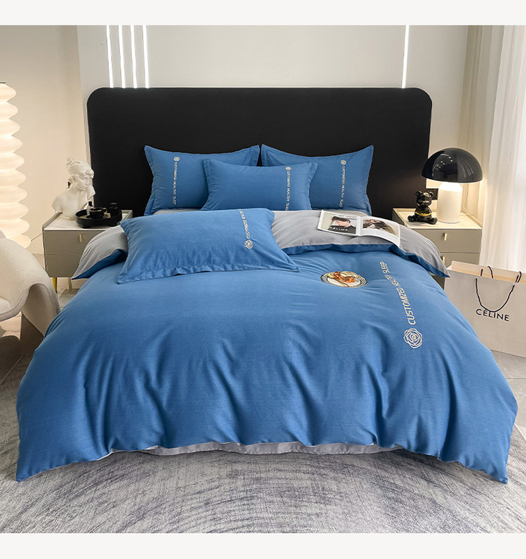 商品名称:AB家纺 2022新款全棉生态磨毛刺绣四件套 月光蓝-绅士灰