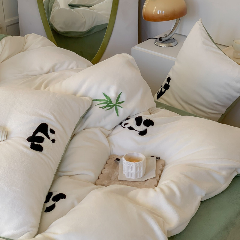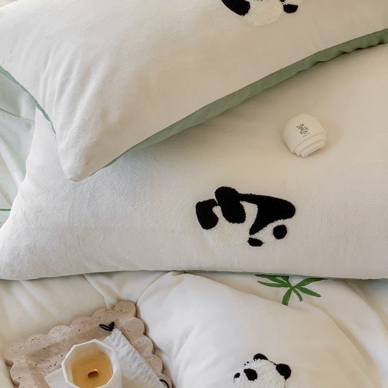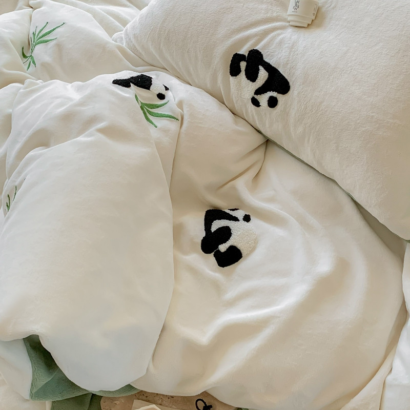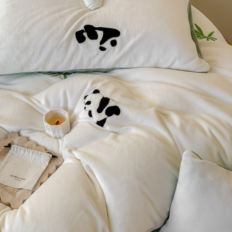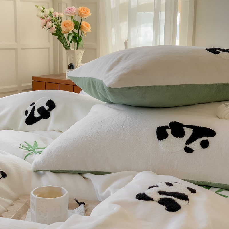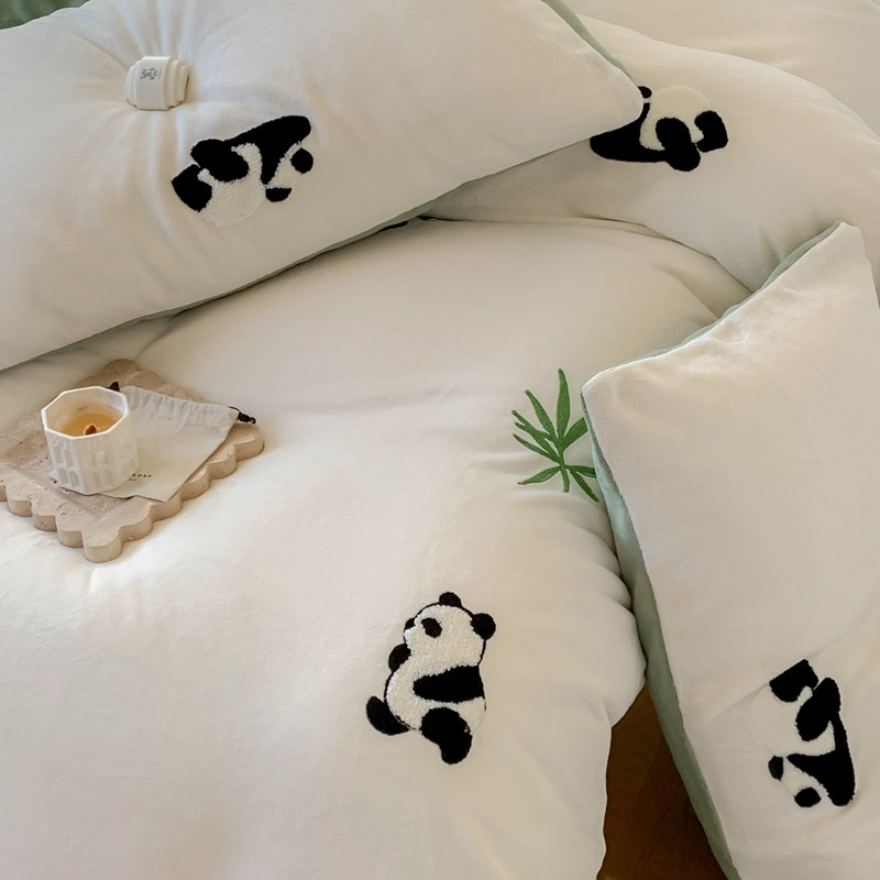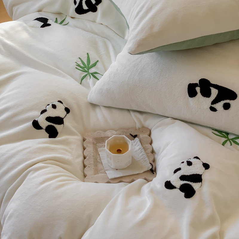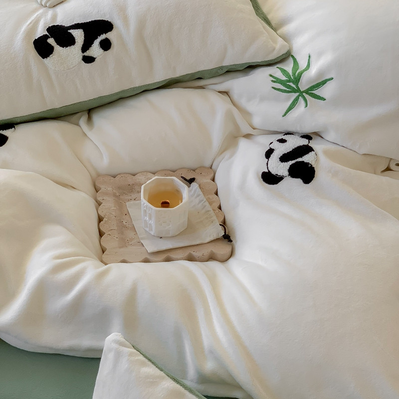 商品名称:时年 2022新款牛奶绒毛巾绣四件套 熊猫嘟嘟