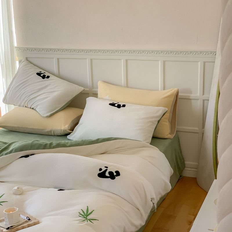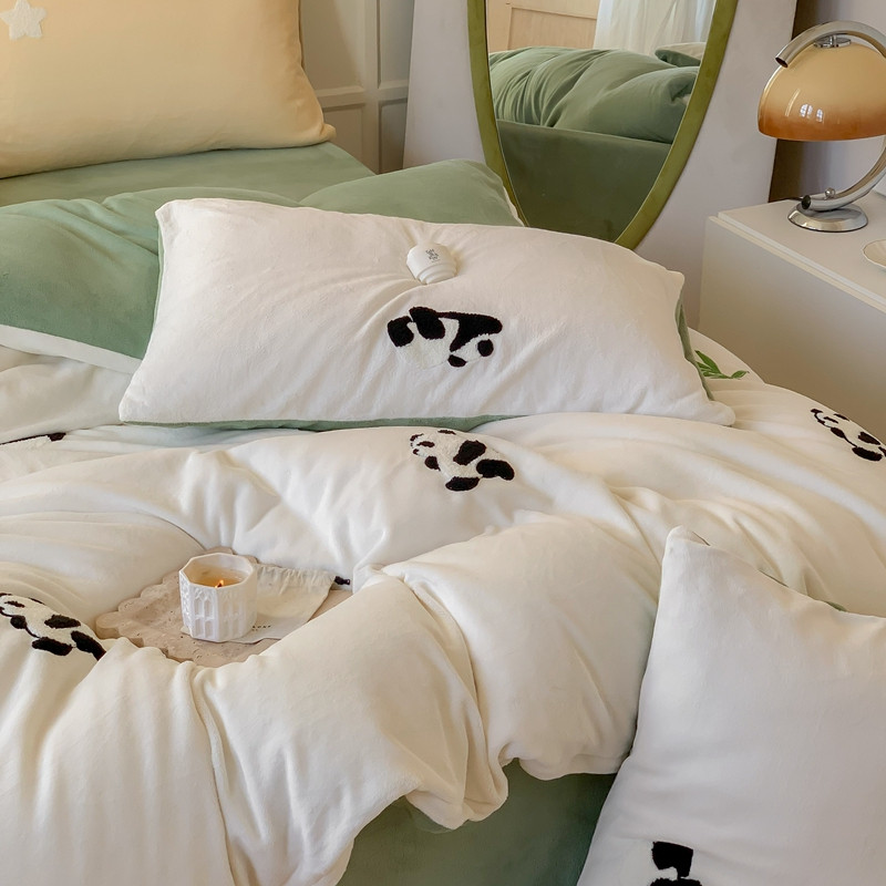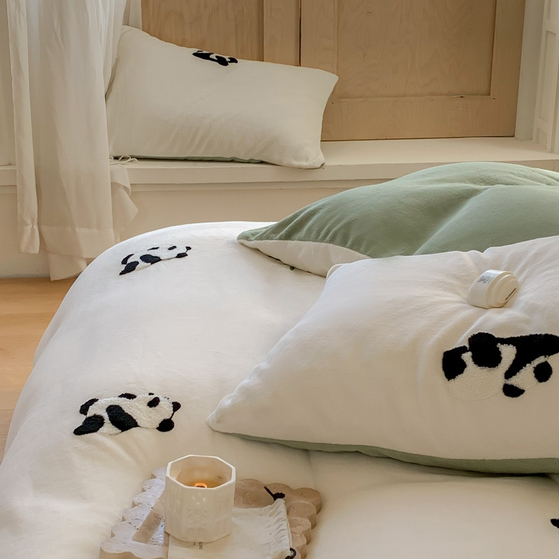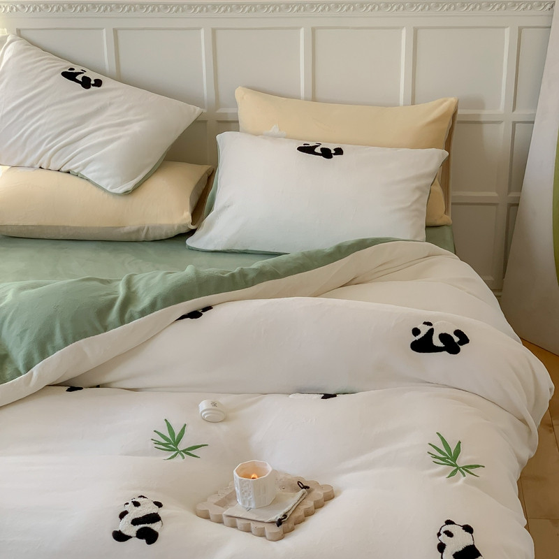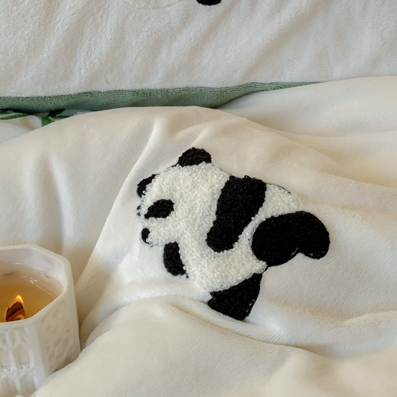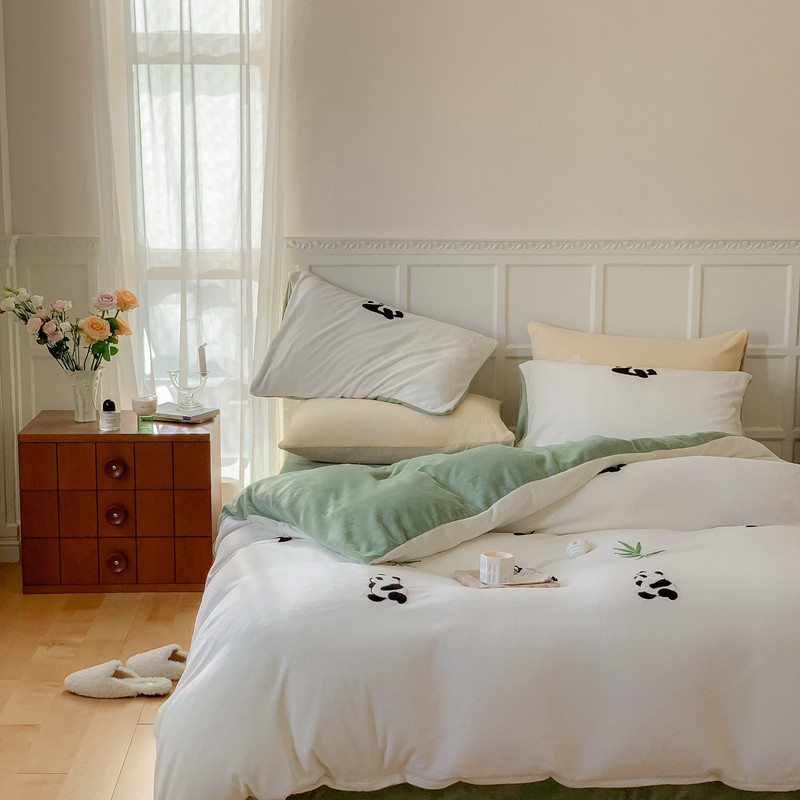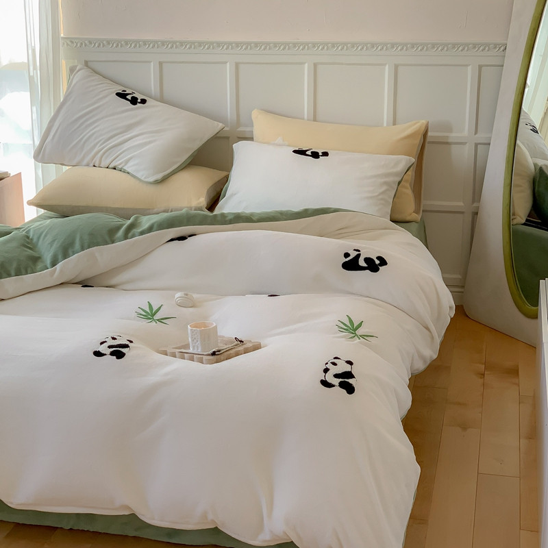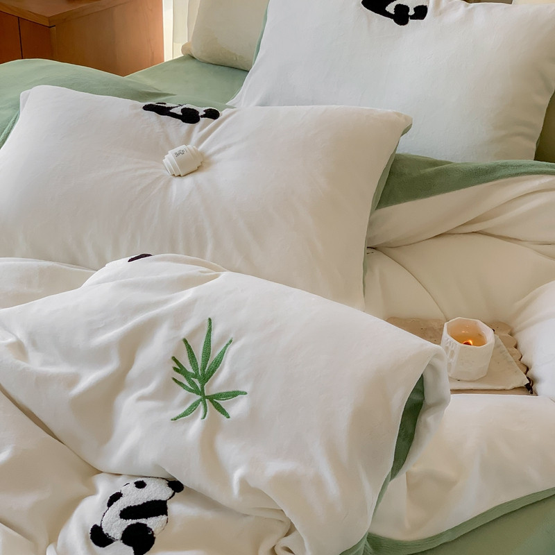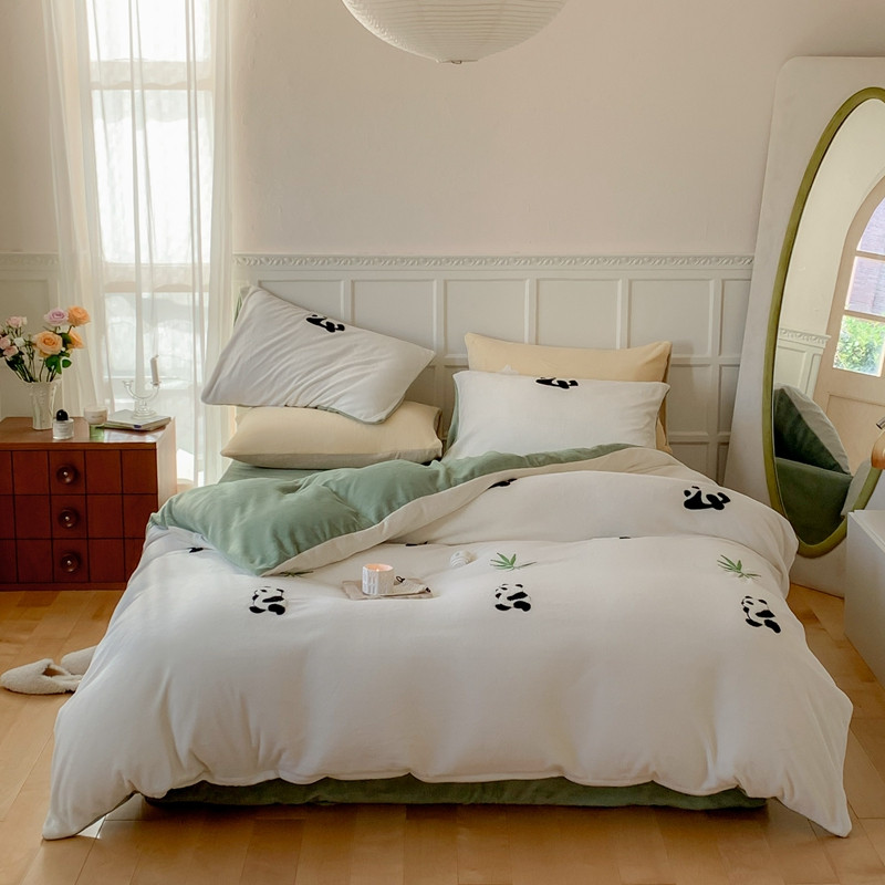 商品名称:时年 2022新款牛奶绒毛巾绣四件套 熊猫嘟嘟