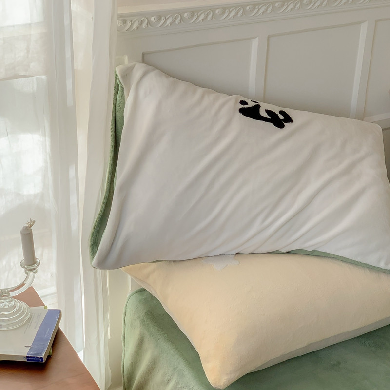 时年 2022新款牛奶绒毛巾绣四件套 熊猫嘟嘟