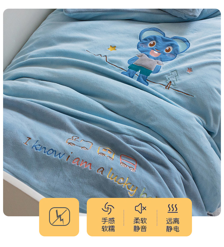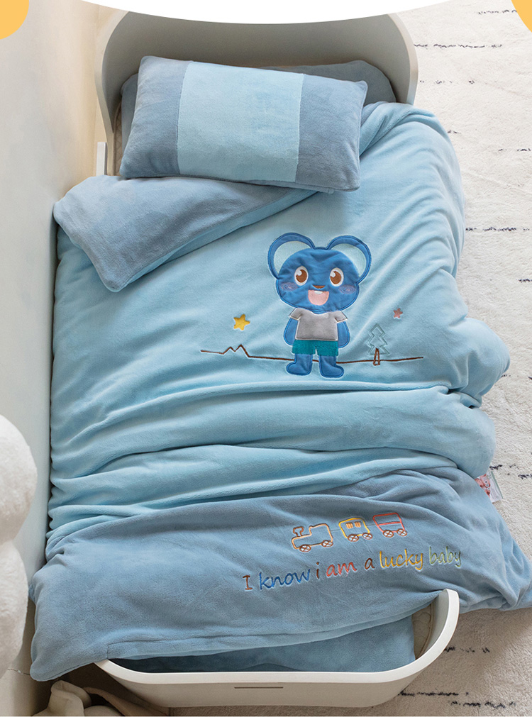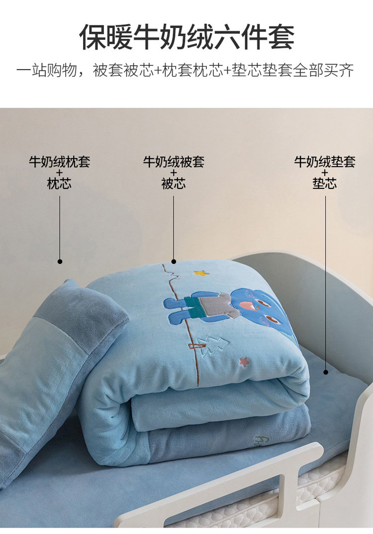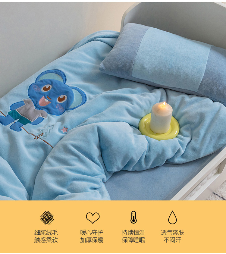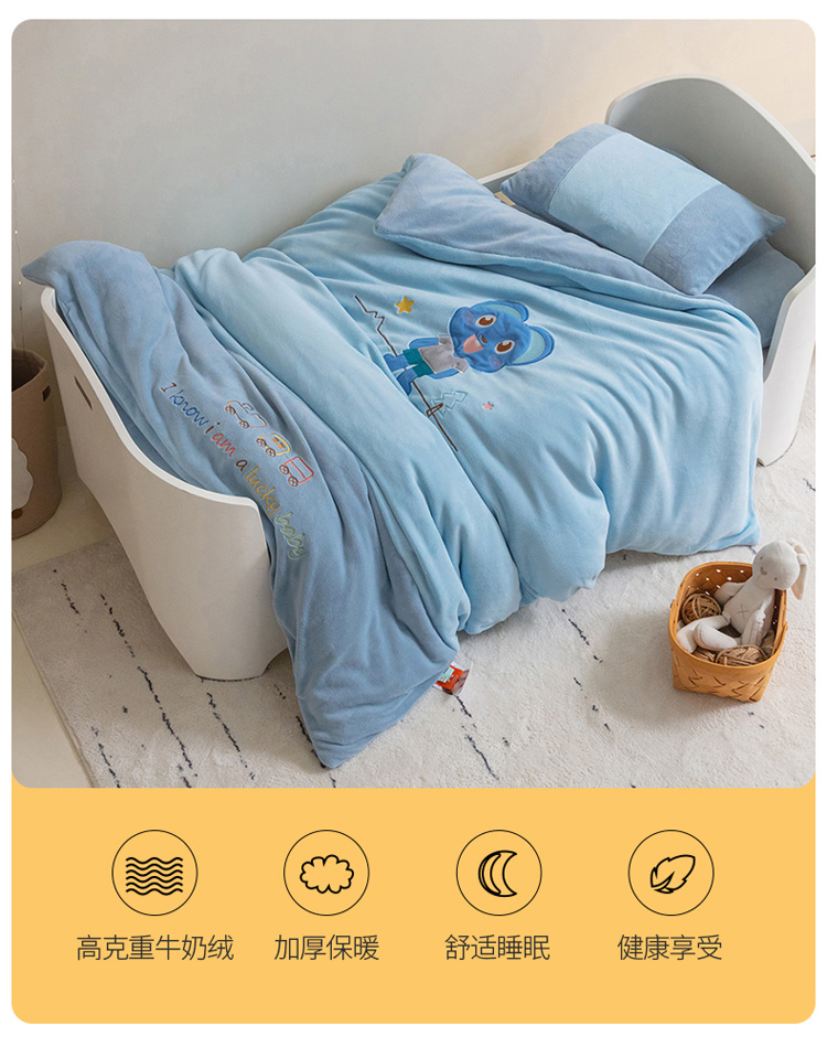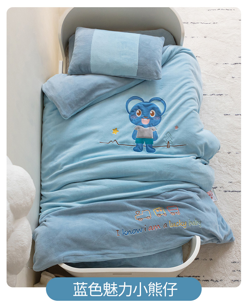 商品名称:喜多兔 2022新款全消光牛奶绒幼儿园三件套-小伙伴 蓝色魅力小熊仔