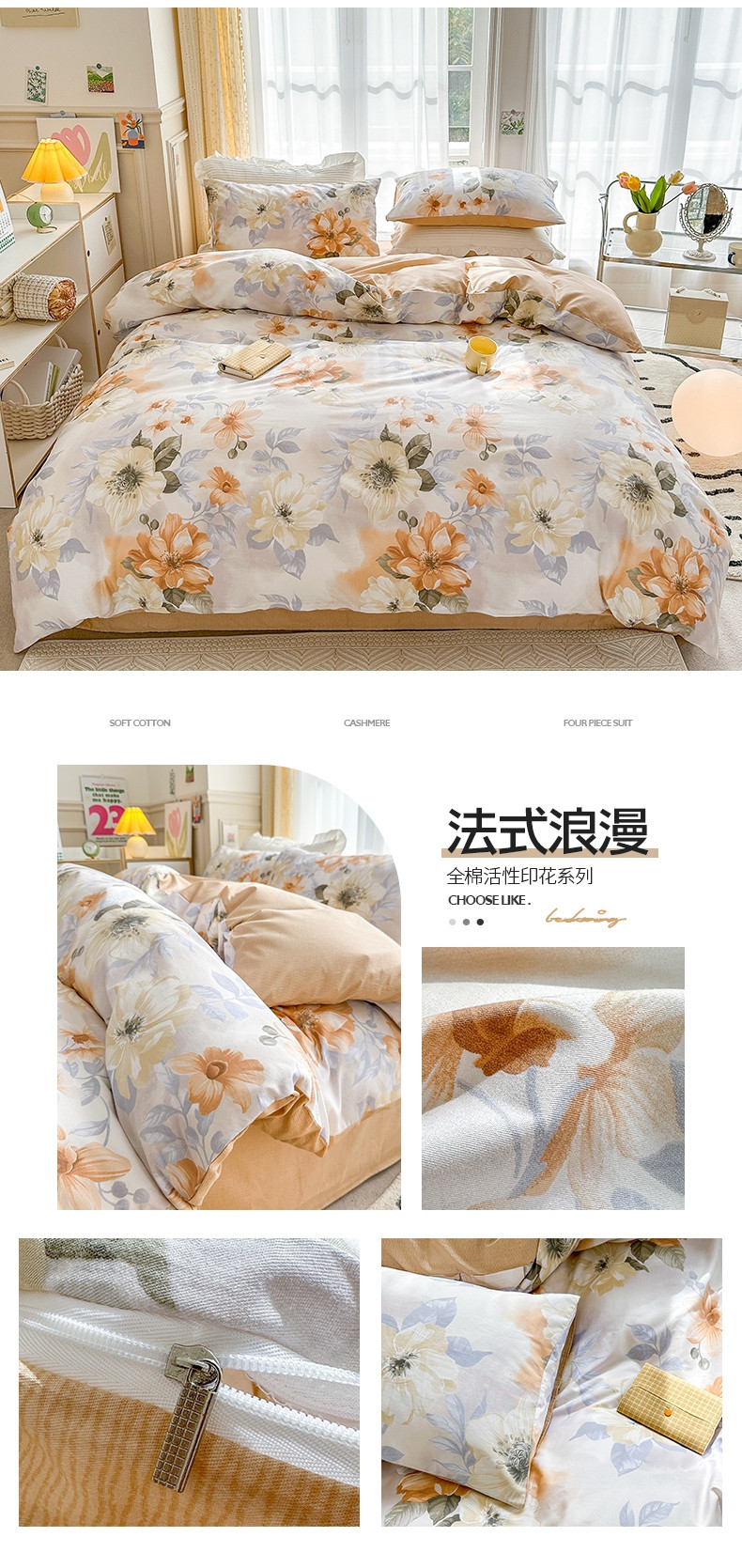 商品名称:(总) 清雅福 2025春夏新品全棉13372印花系列四件套