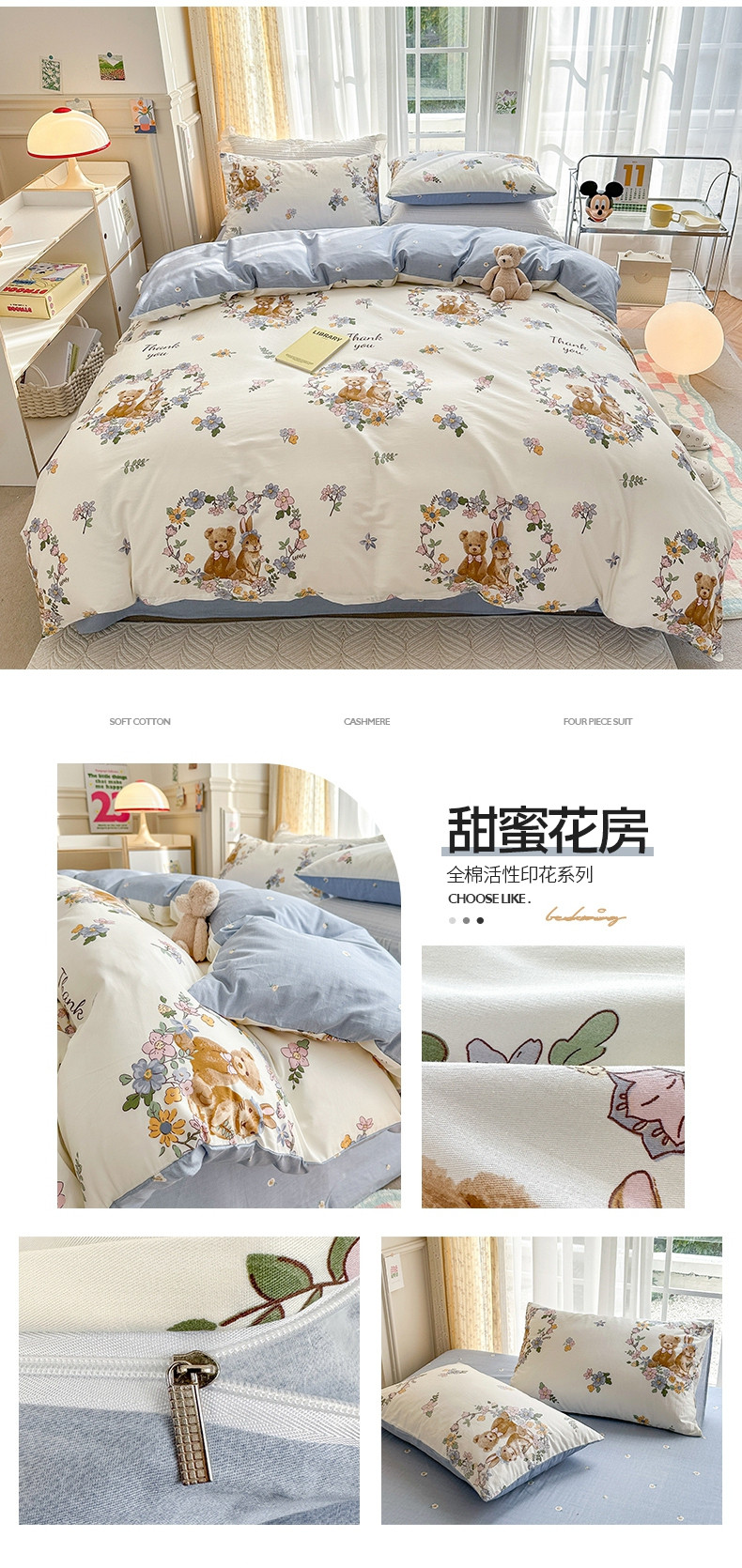 (总)清雅福 2025新款全棉柔软印花系列四件套,安缦小熊,彩虹小镇,丛草集,大耳朵,乖乖兔,滚滚绣球团,蜜罐猫猫,奶酪幼儿园,奶油阿布-蓝,秋日手册,碎花兔熊,太空梦乐园,糖果影院,糖纸童年,甜莓手记-米,汪星卧室,星际仔仔,熊猫鸭鸭乐-兰,熊猫鸭鸭乐-绿,云裳花谷