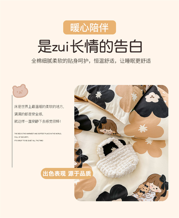 优彩 2023新款13372全棉小清新卡通系列四件套 安娜