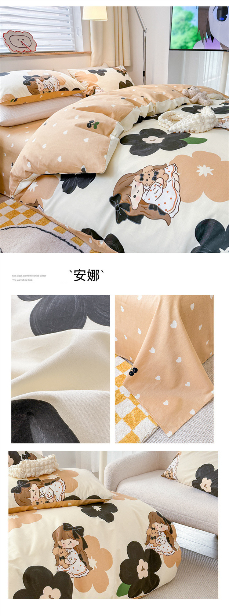 商品名称:优彩 2023新款13372全棉小清新卡通系列四件套 安娜