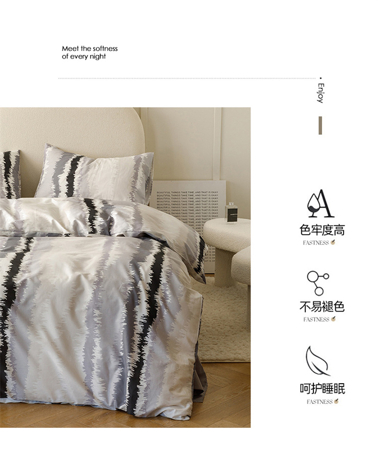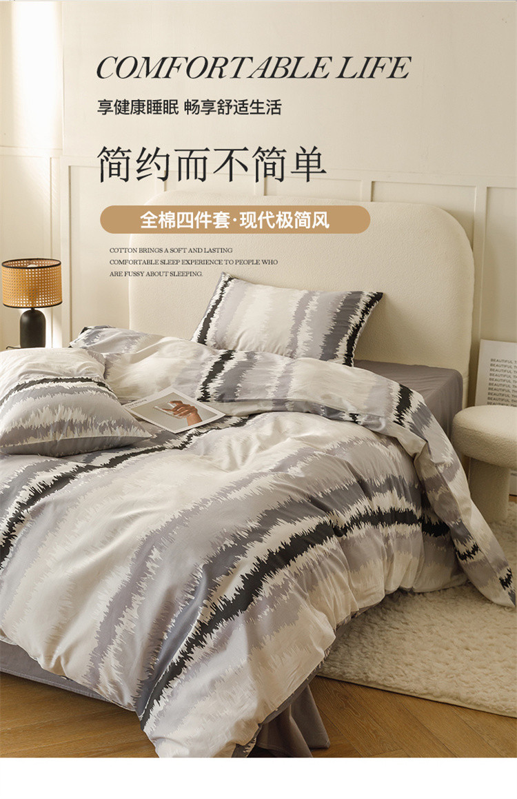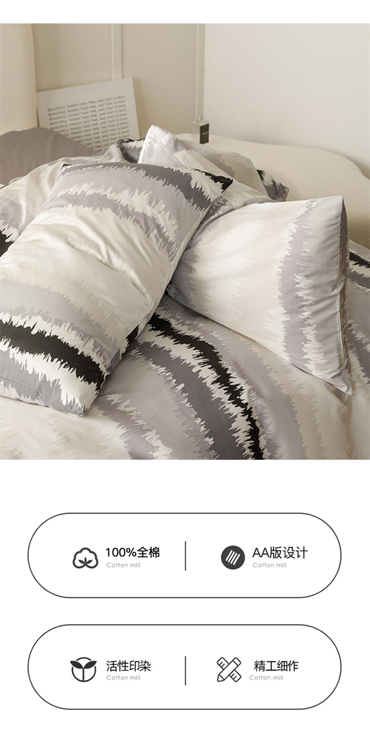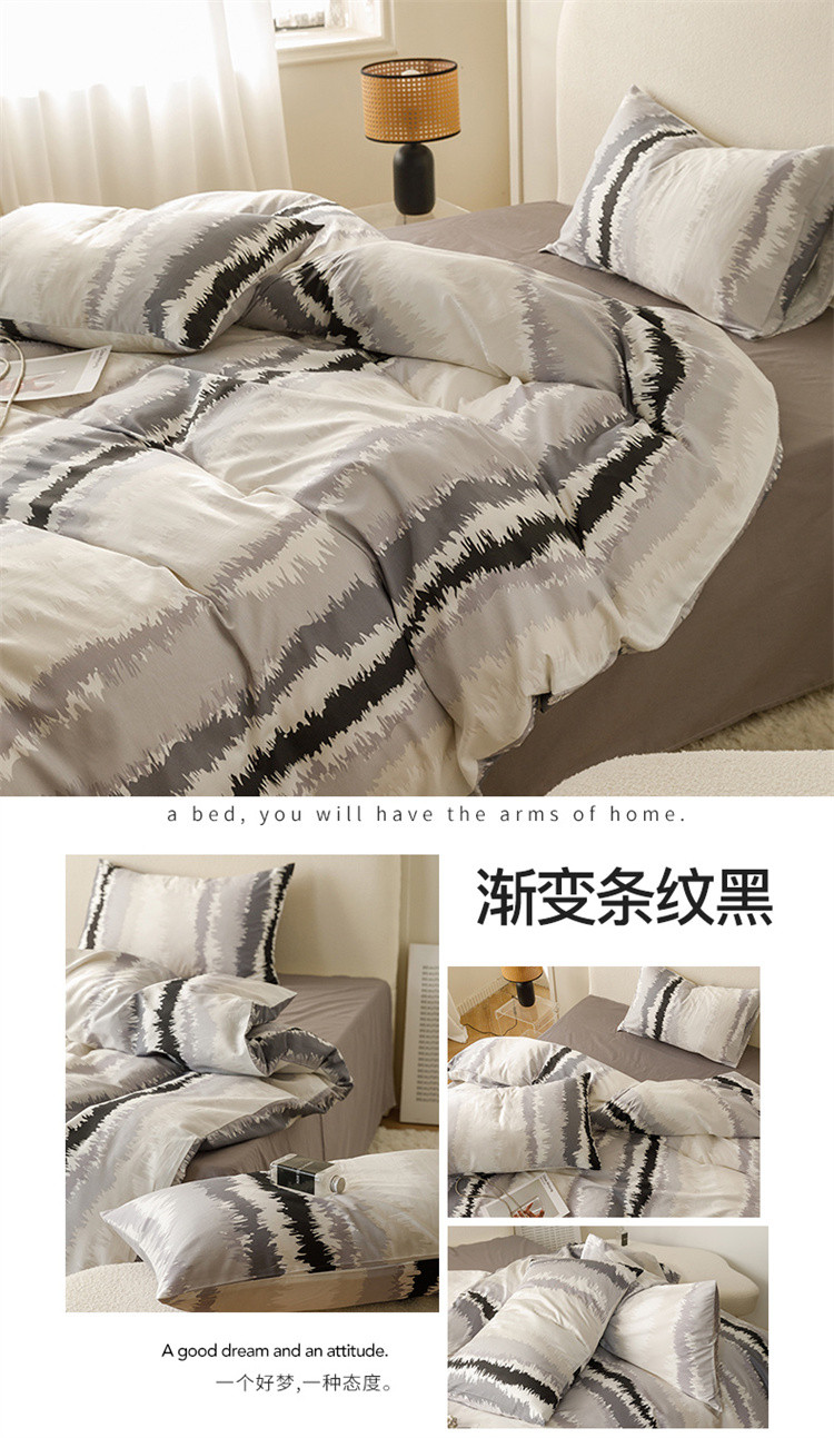 商品名称:优彩 2023新款现代极简渐变风全棉四件套 渐变-条纹黑