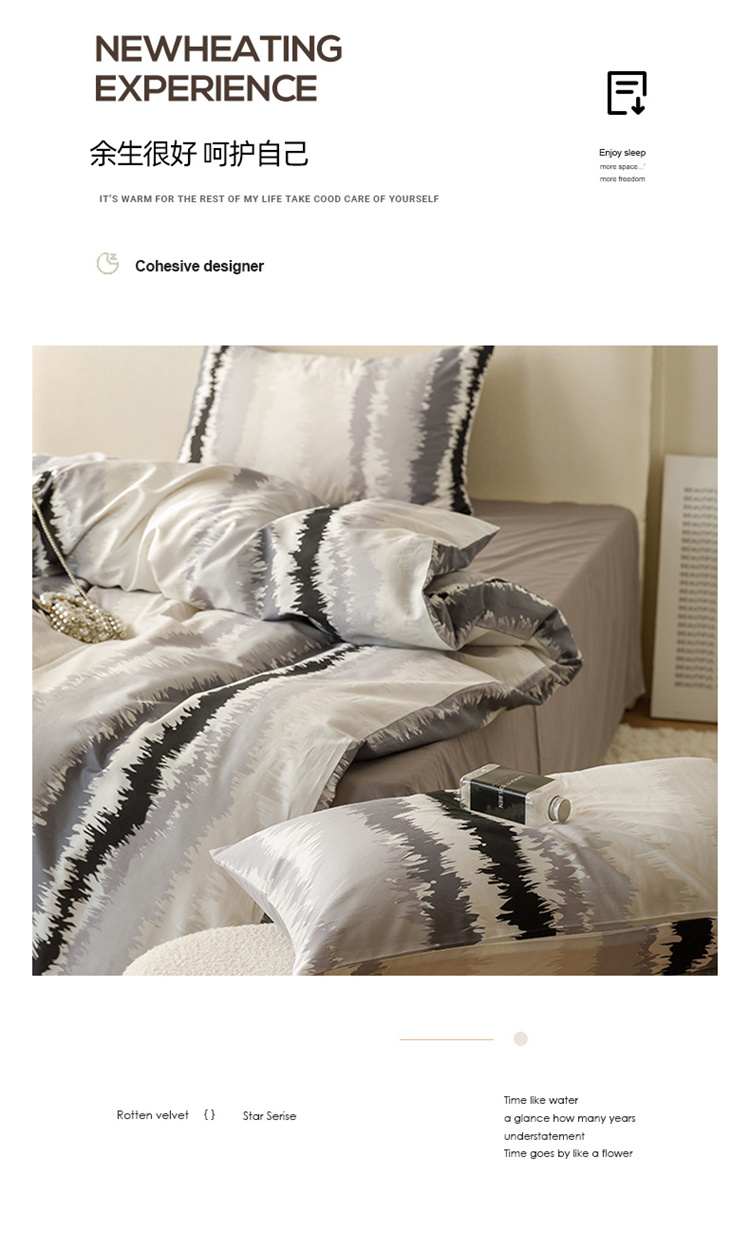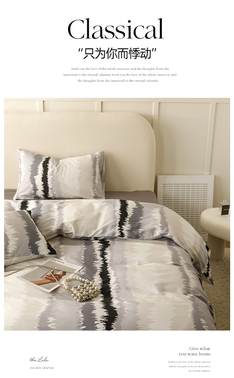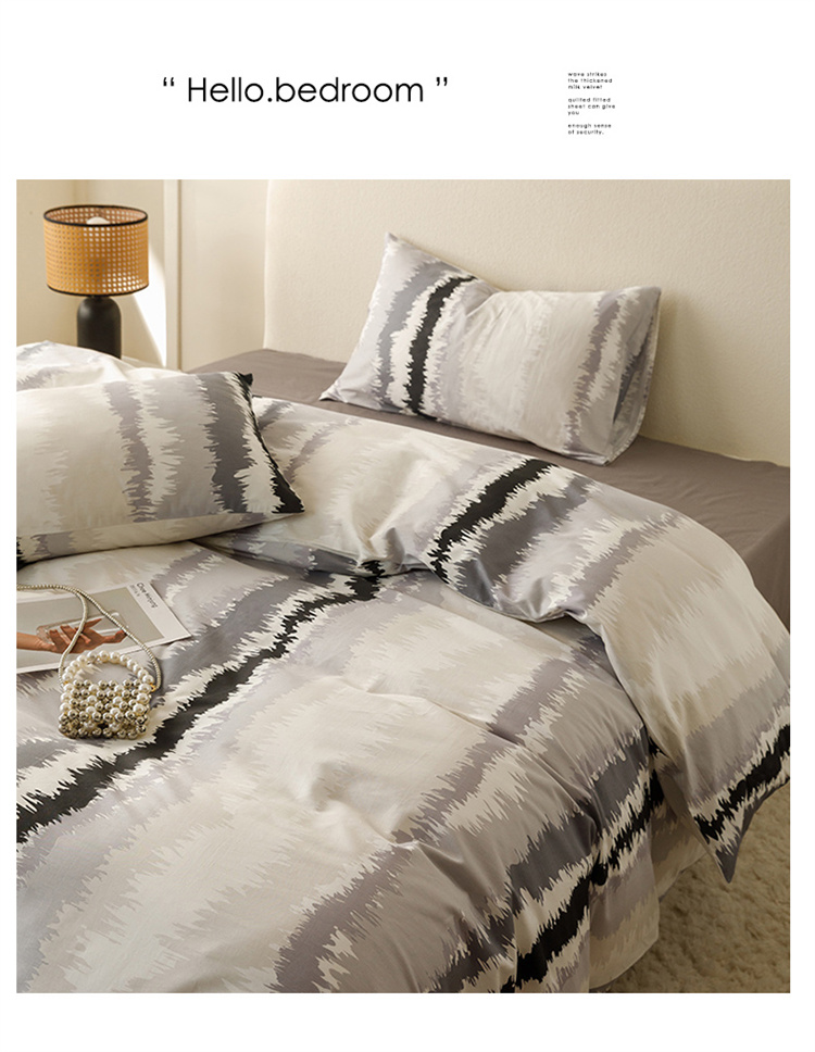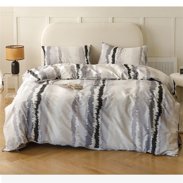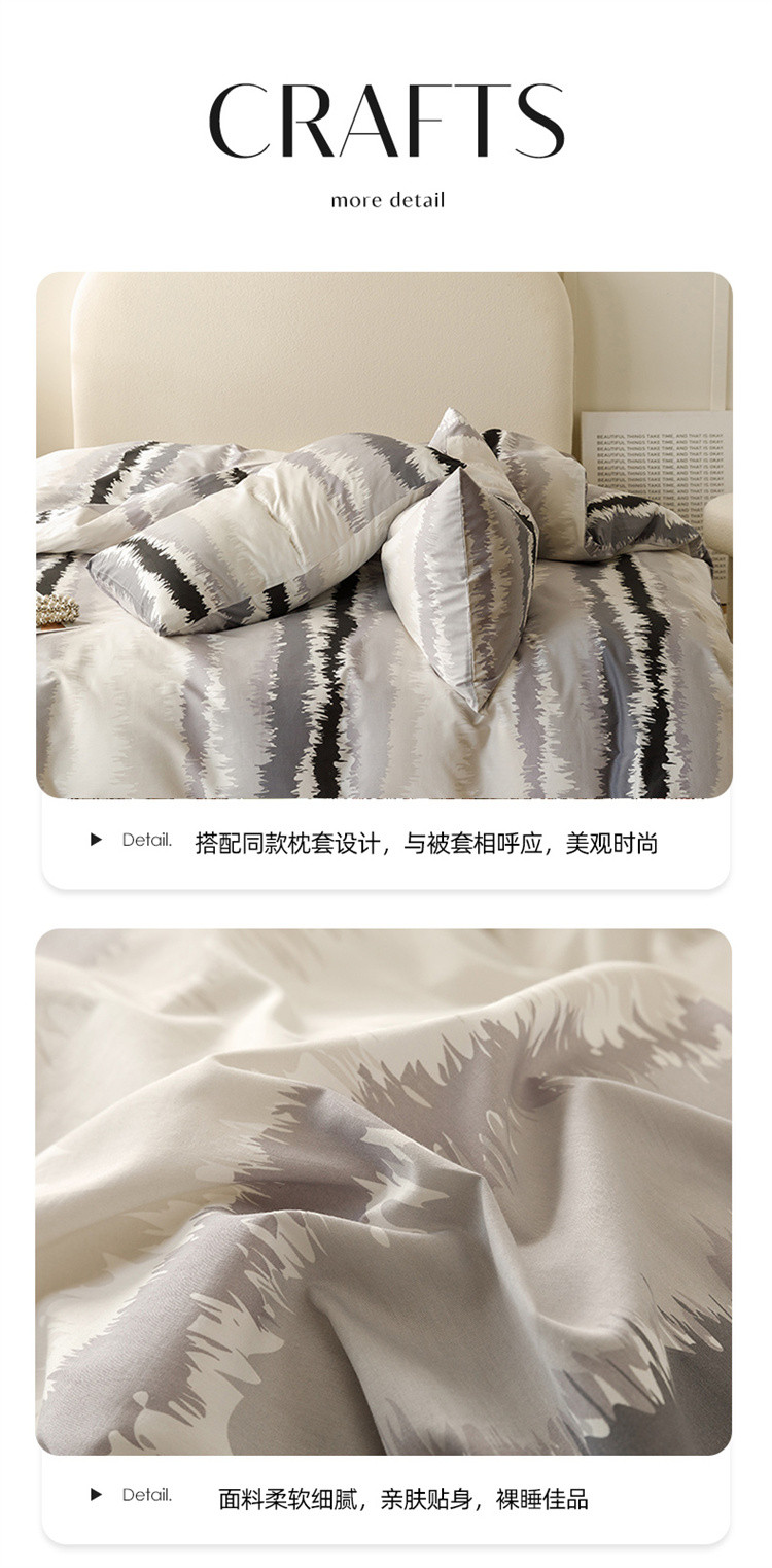 商品名称:优彩 2023新款现代极简渐变风全棉四件套 渐变-条纹黑