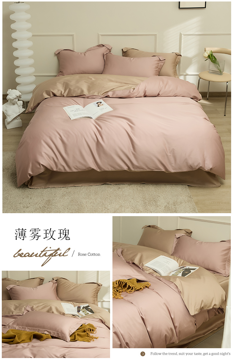 当前位置: 91家纺网 > 商品网购 > 床品套件 > 四件套 > 长绒棉四件套 > 新款100S长绒棉双拼四件套 薄雾玫瑰