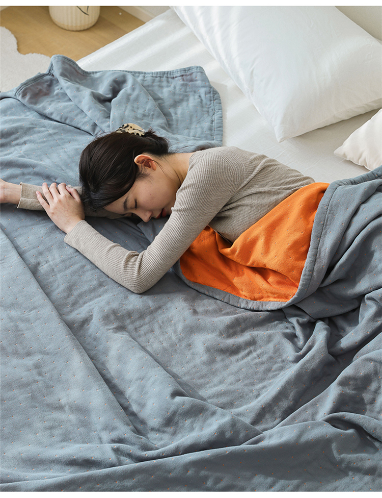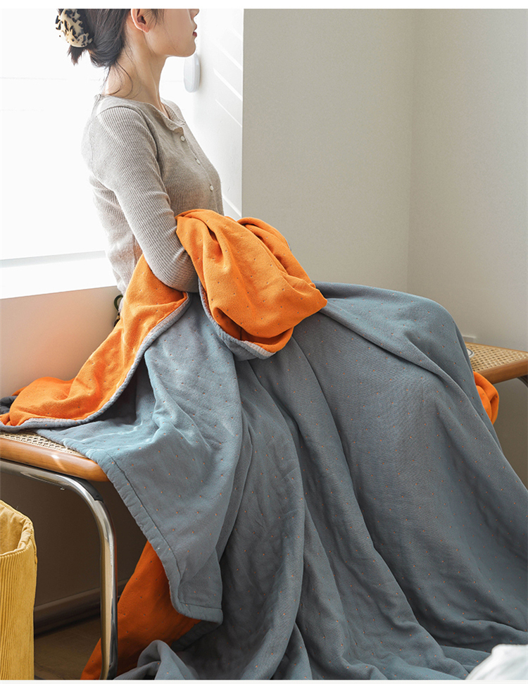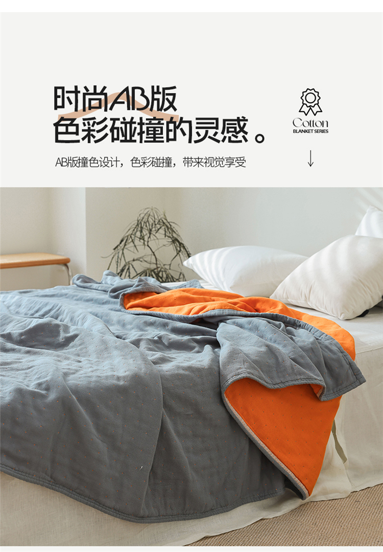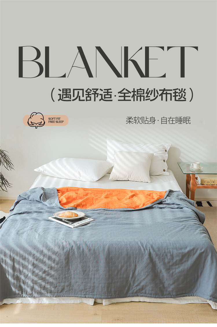 雯雨家纺 2023新款全棉拼色纱布毛巾被 刺绣-兰