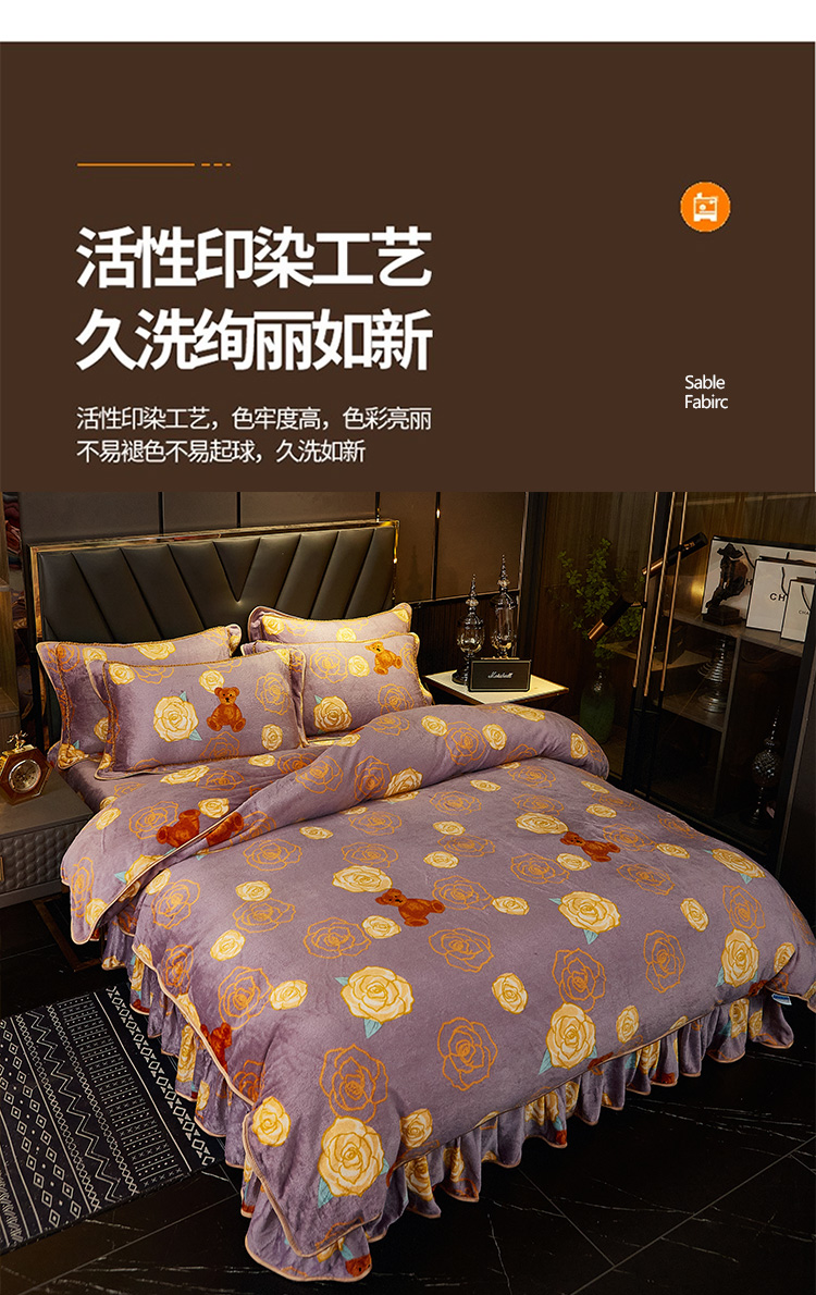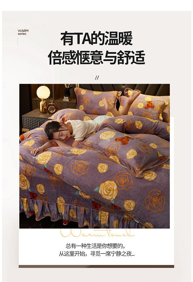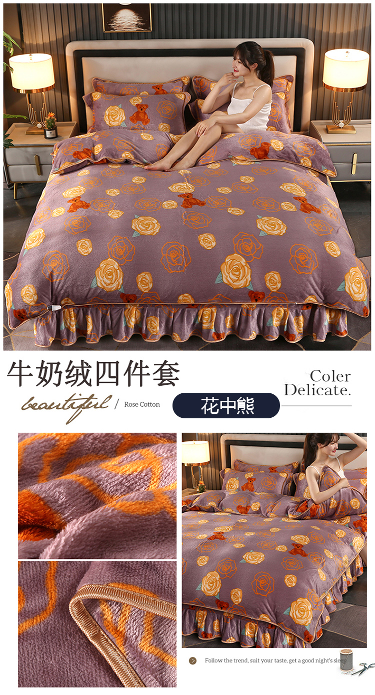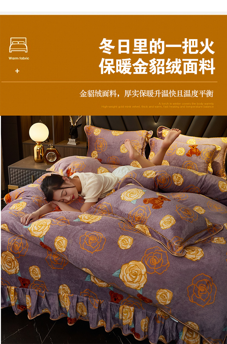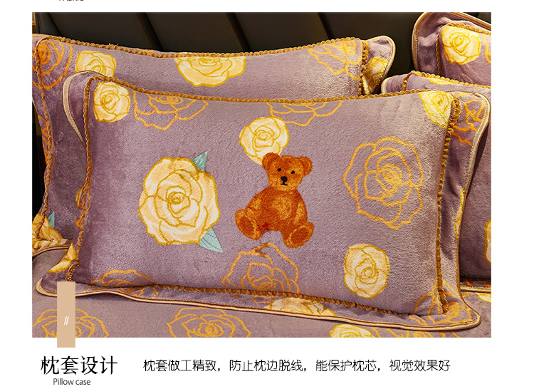 商品名称:爱上家居 2023新款保暖金貂绒印花保暖四件套 玫瑰熊