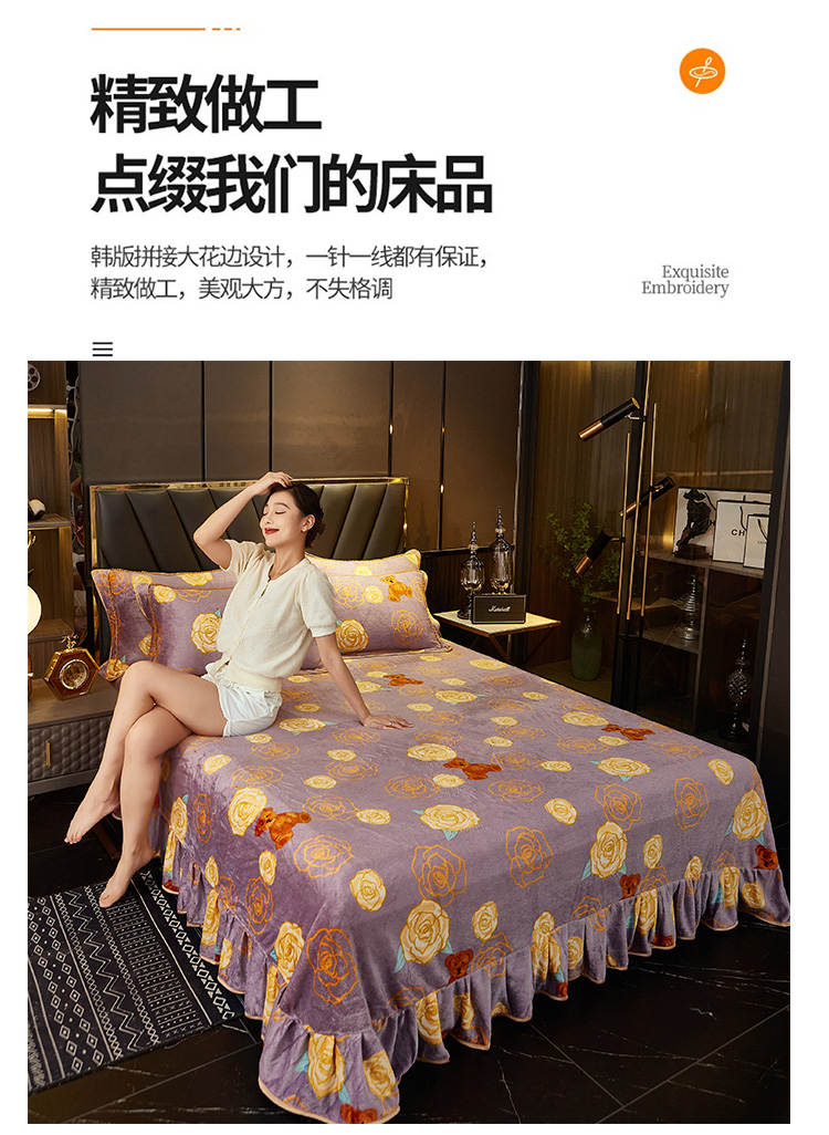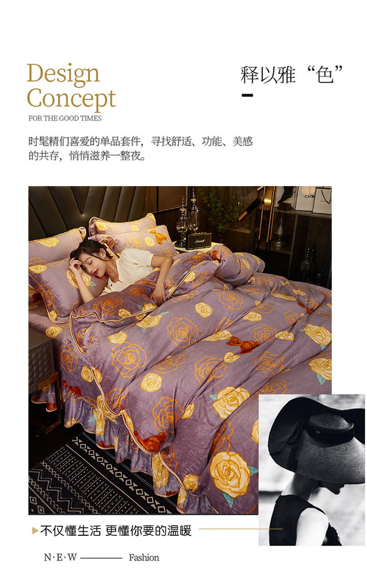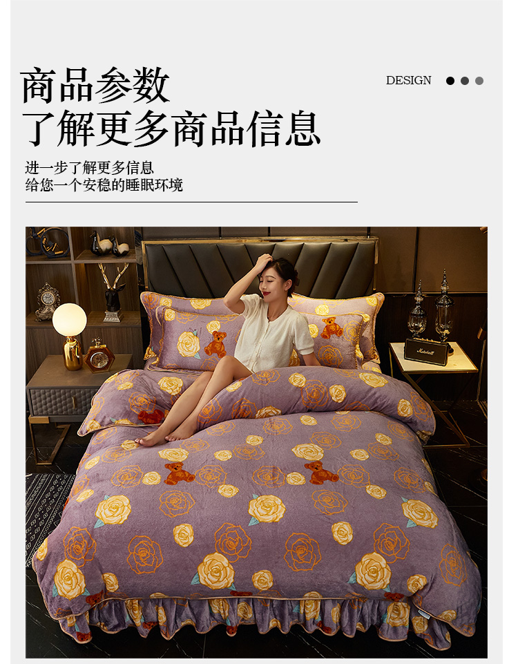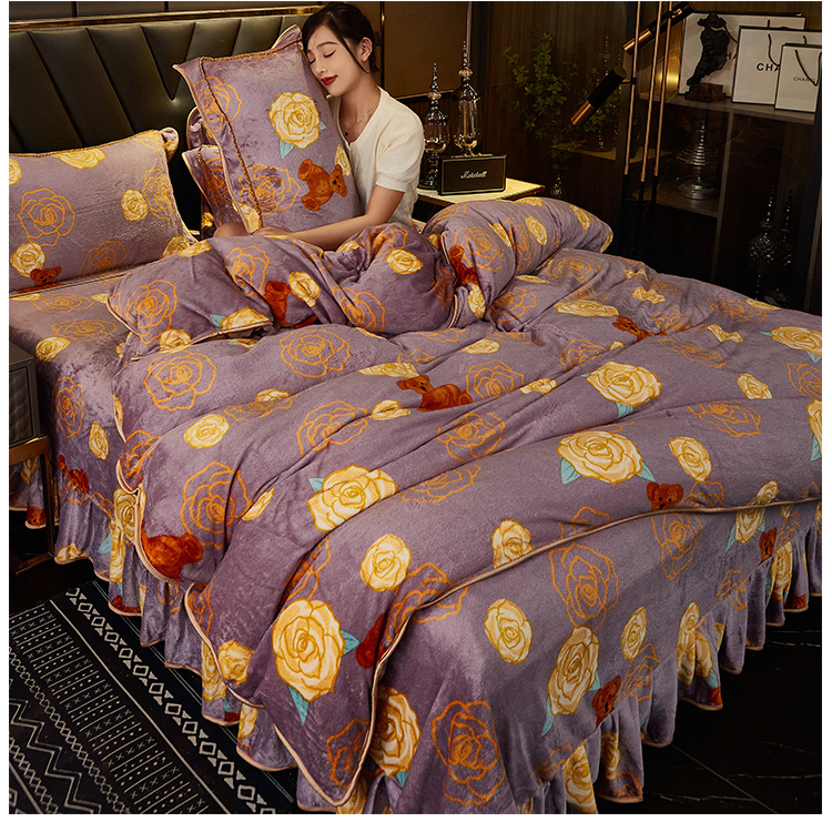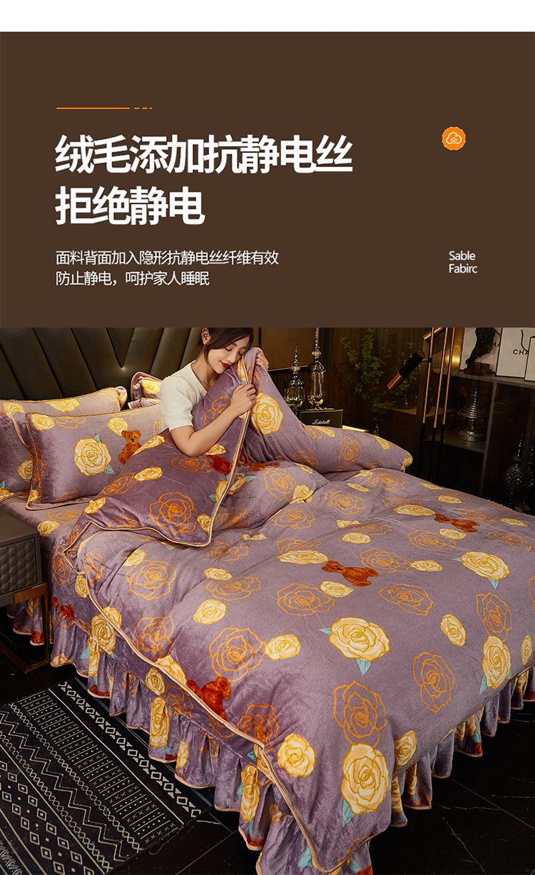 商品名称:爱上家居 2023新款保暖金貂绒印花保暖四件套 玫瑰熊