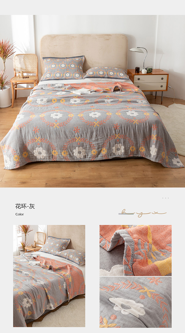 朴尔 2023年新款四层韩版碎花风全棉纱布毛巾被 花环-灰
