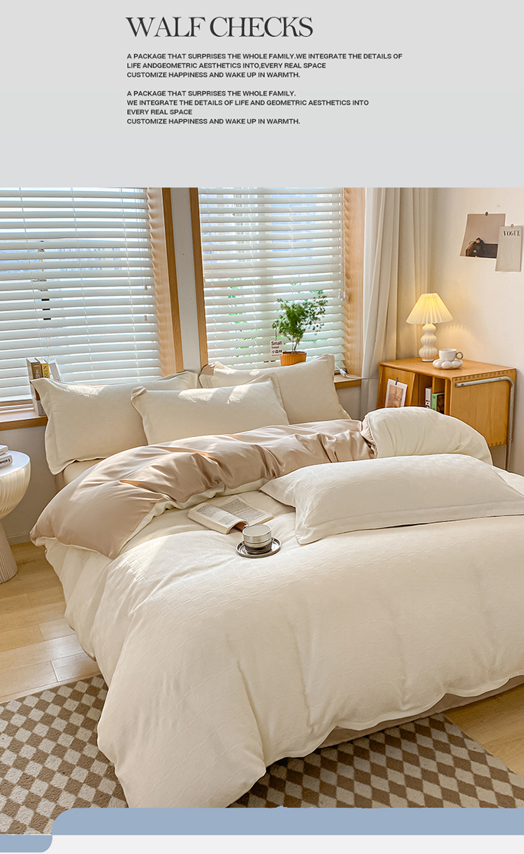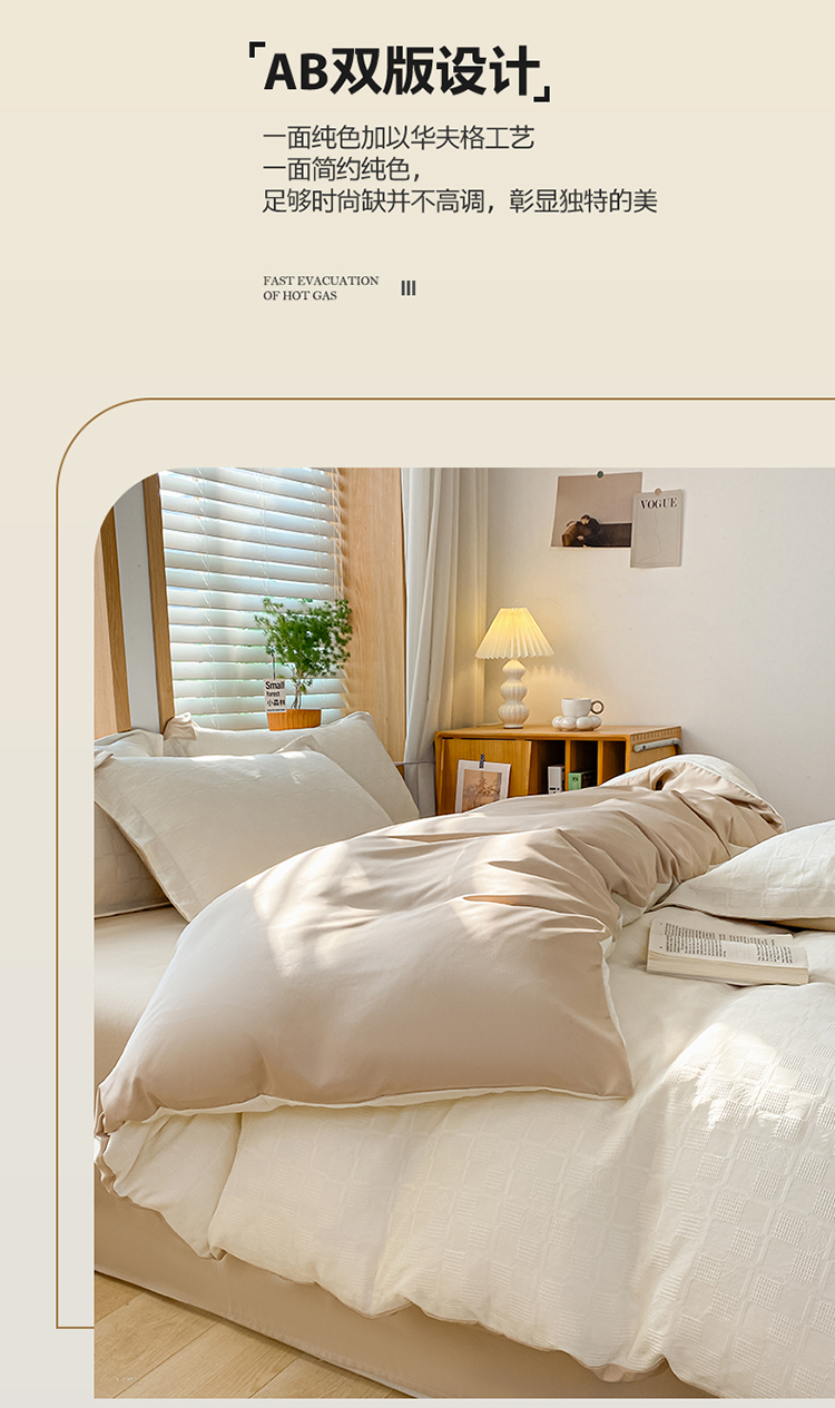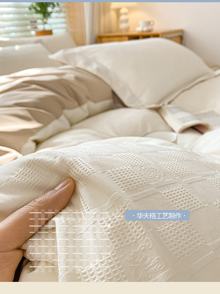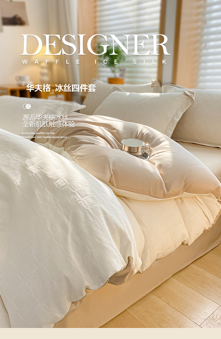 当前位置: 91家纺网 > 商品网购 > 床品套件 > 四件套 > 化纤活性四件套 > 骏腾家纺 2023新款华夫格冰丝四件套 华夫格-奶白
