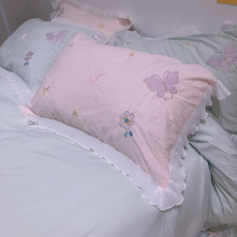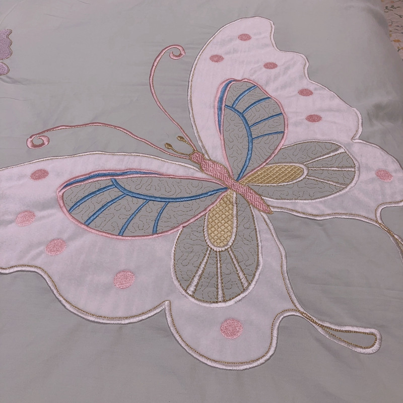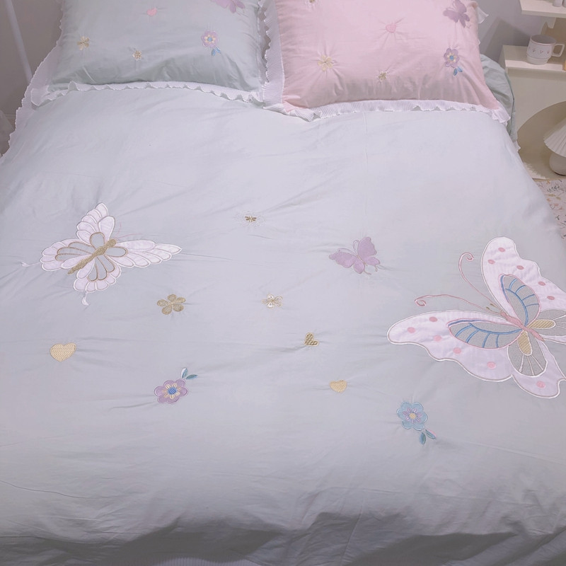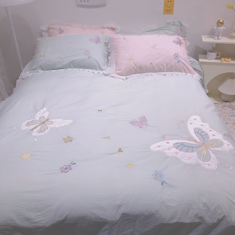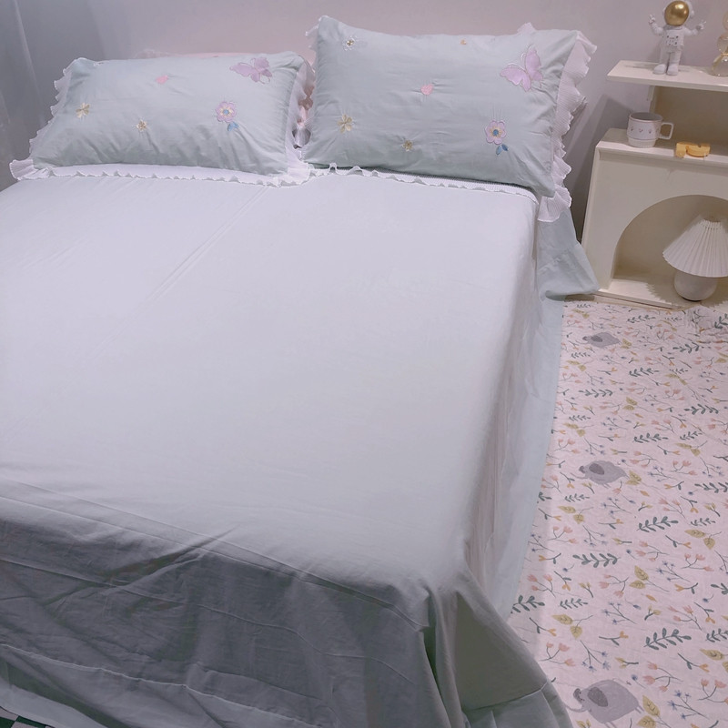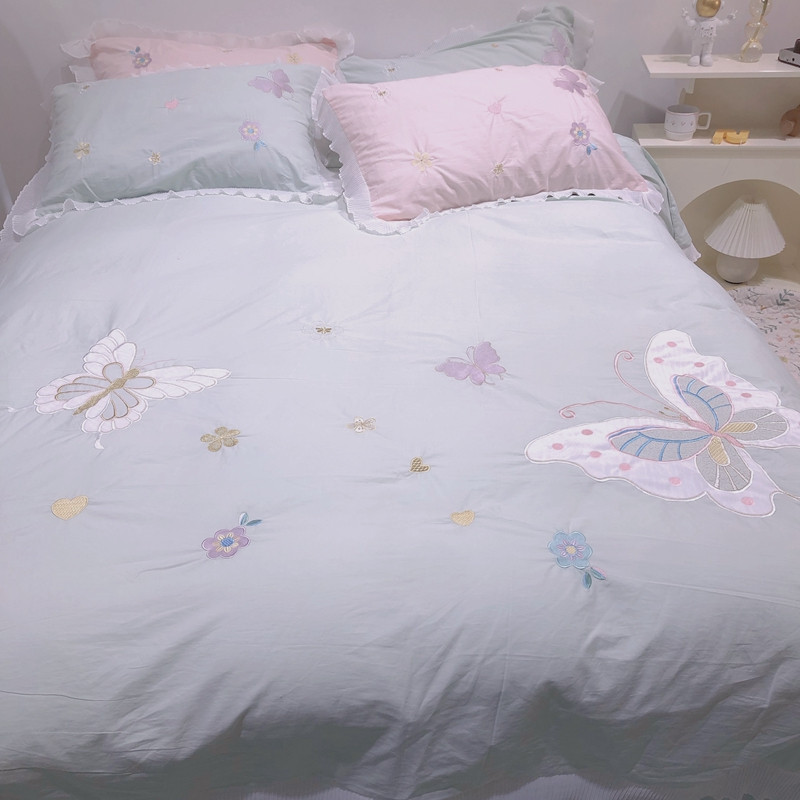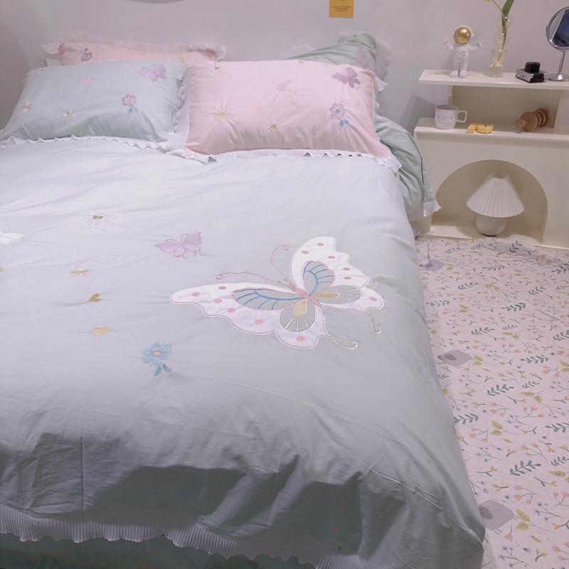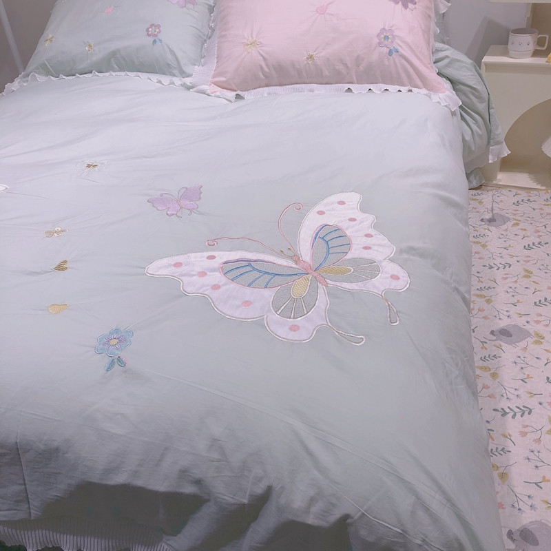 梵克保罗 新款母婴级全棉水洗棉绣花四件套-蝴蝶夫人 蝴蝶夫人-绿