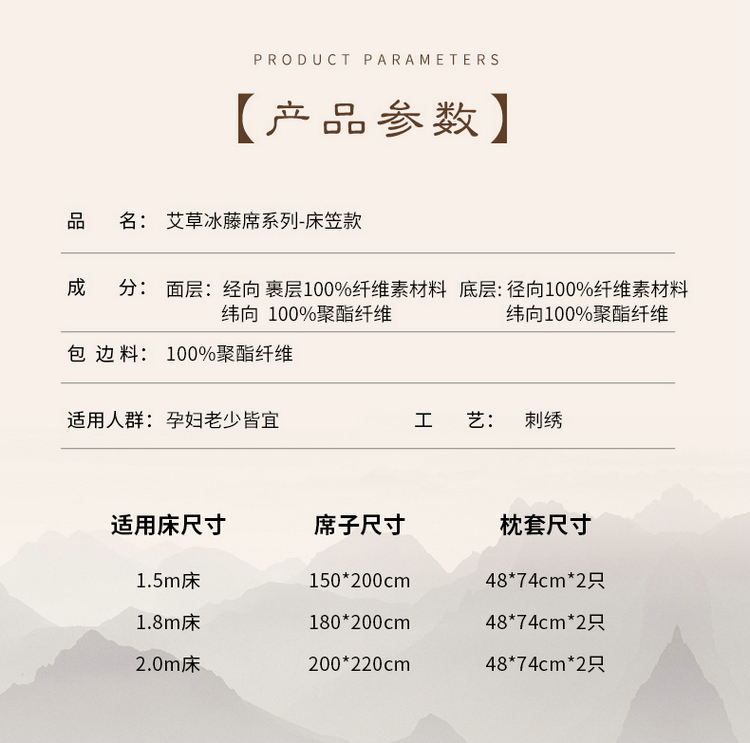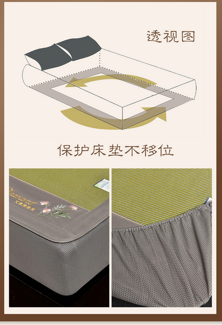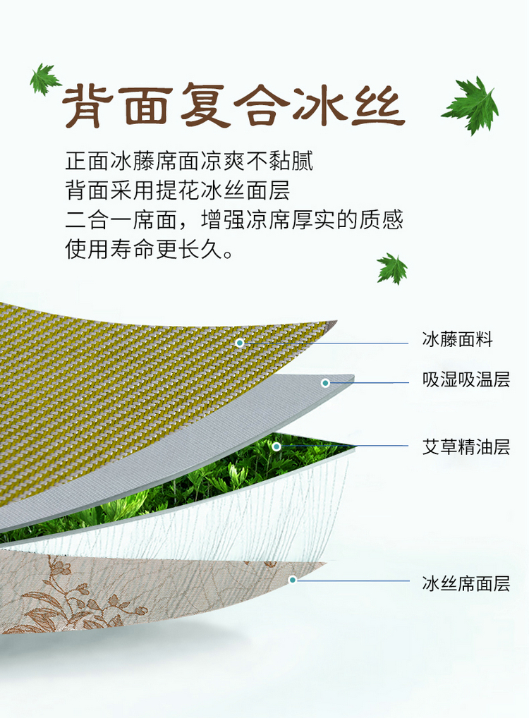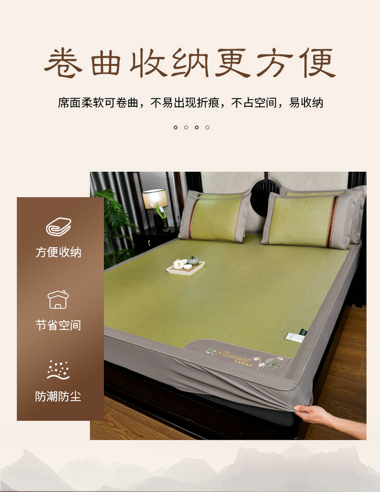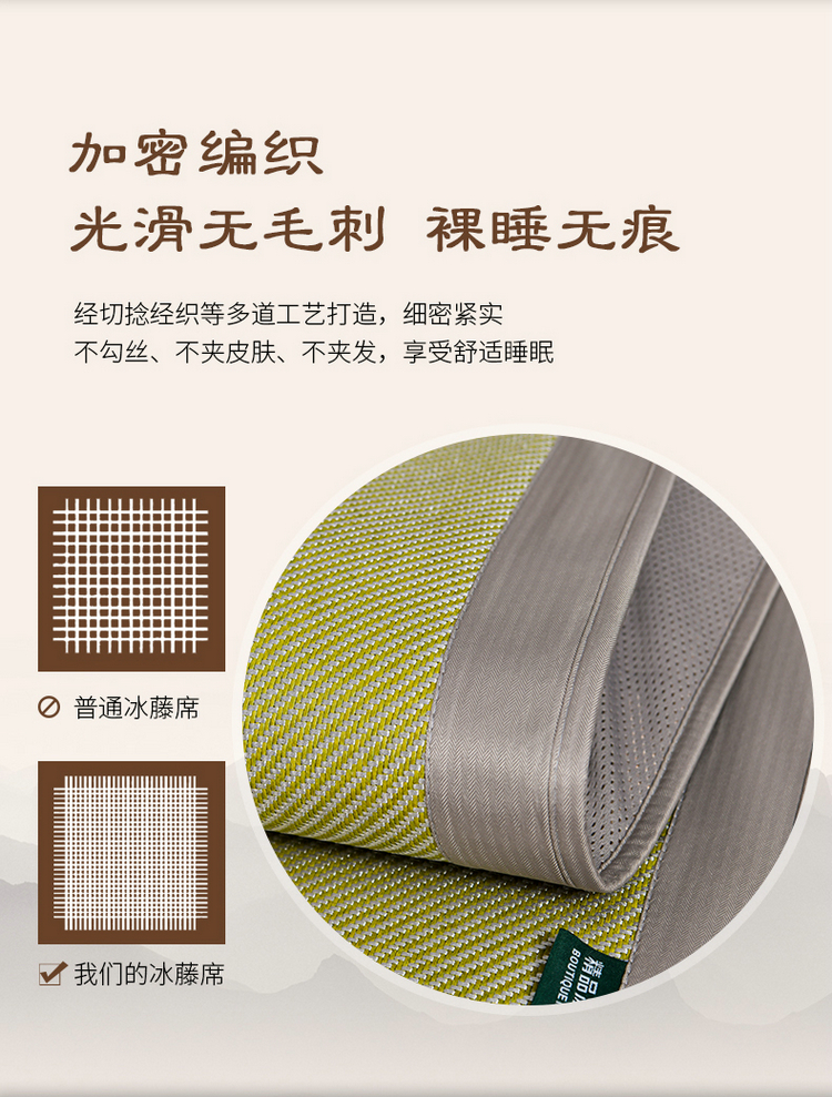 商品名称:小牛席业2023新款艾草清香冰藤席系列(床笠款) 青柠