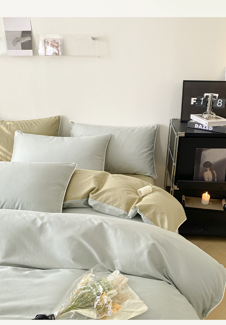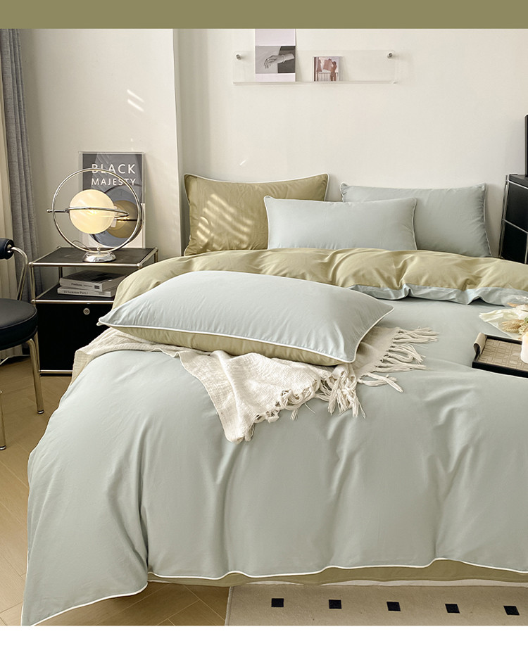 商品名称:万盛家纺 2025新款全棉纯棉纯色拼色简约四件套 蓝-绿