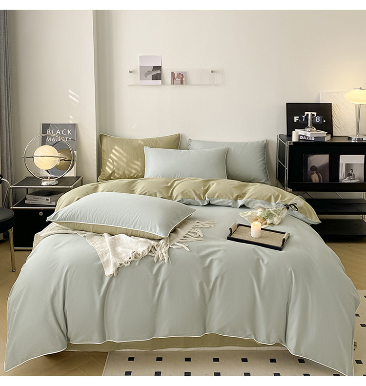 (总)万盛家纺 2025新款全棉水洗棉拼色四件套,宾利蓝拼淡咖,灰拼浅咖,抹茶绿拼淡咖,浅咖拼软桃,浅紫拼灰,软桃拼冰心,烟粉拼灰,夜色灰拼军绿