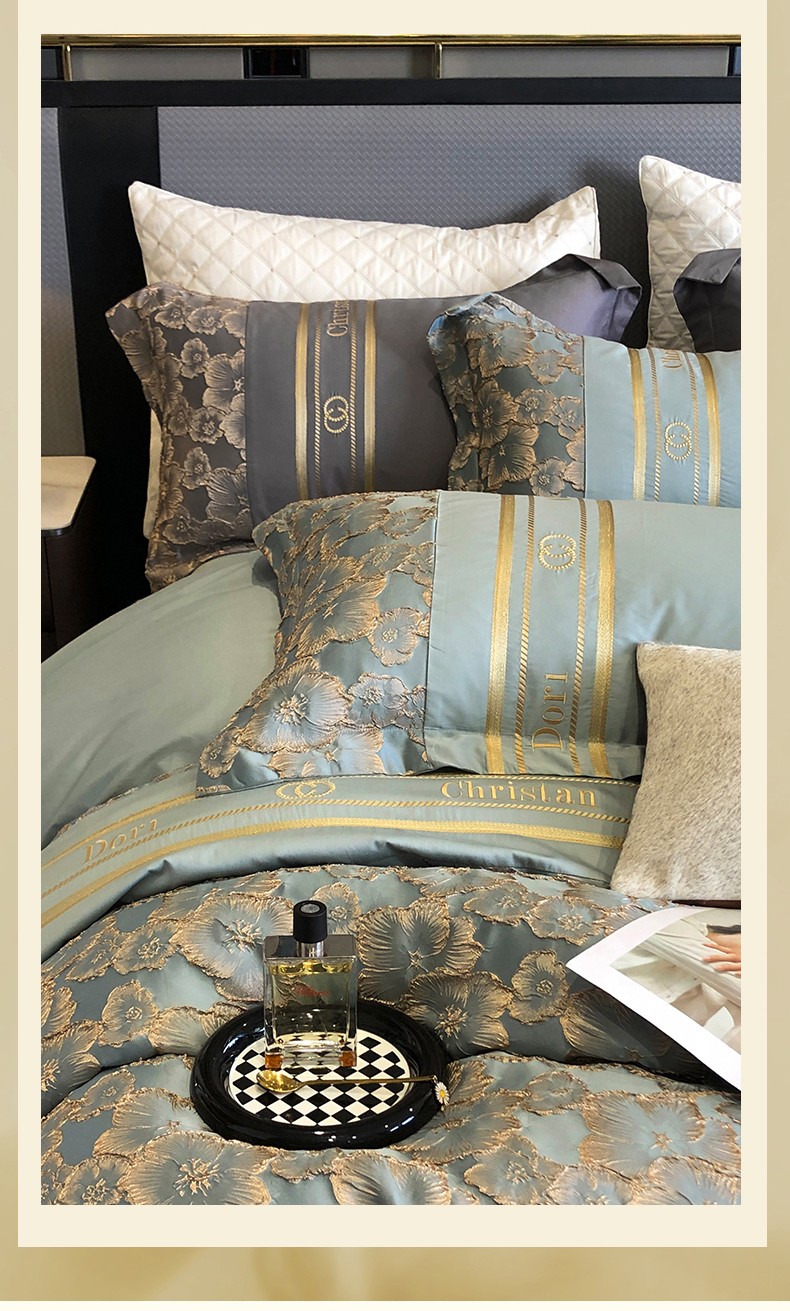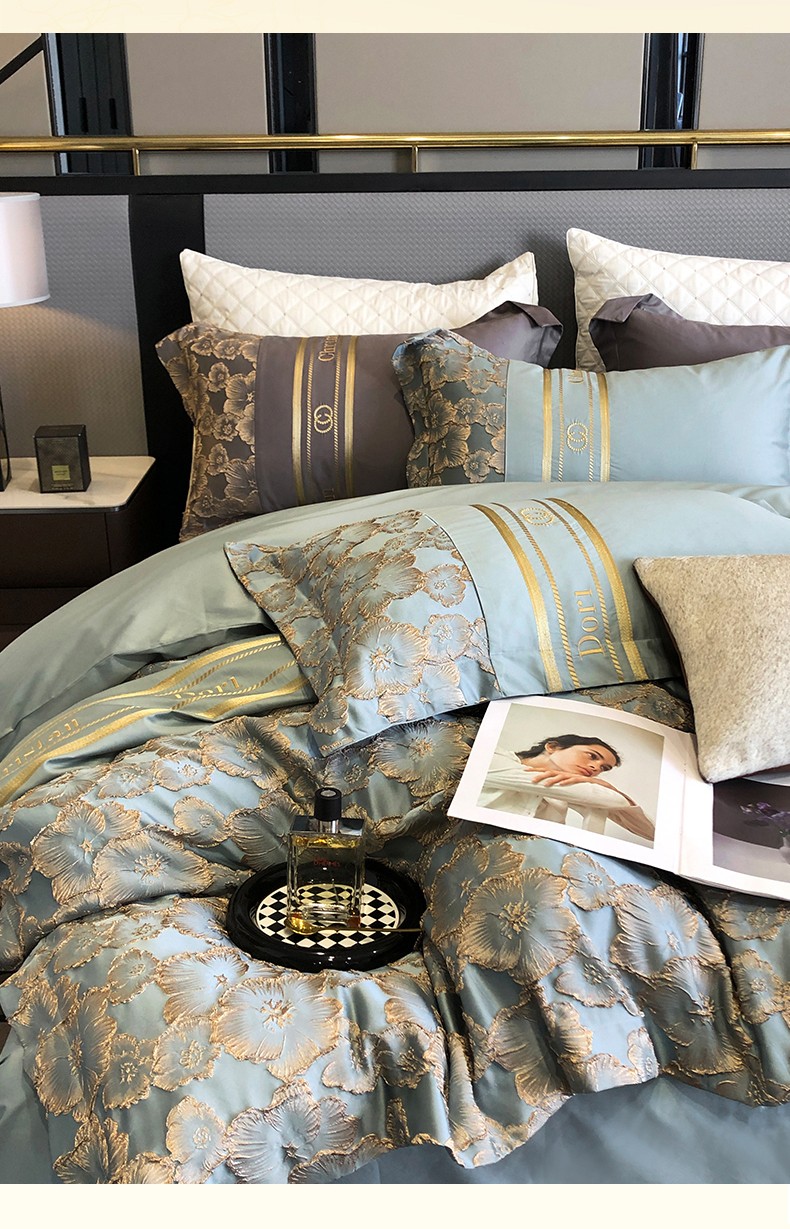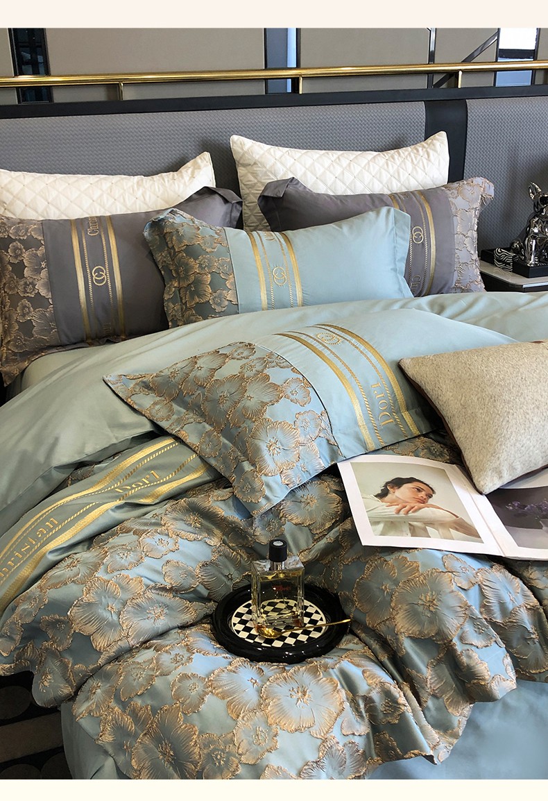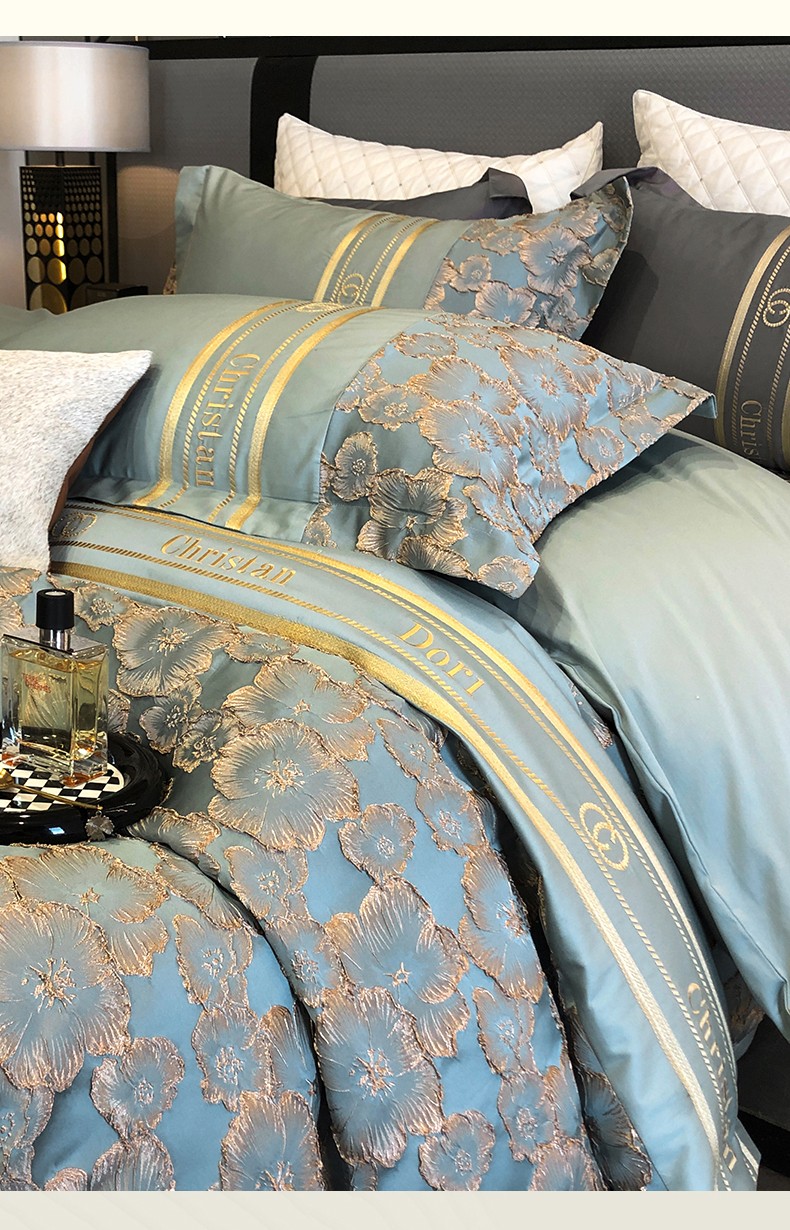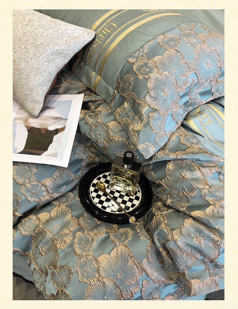 罗优 2025新款高精密浮雕长绒棉四件套玫瑰星海蓝