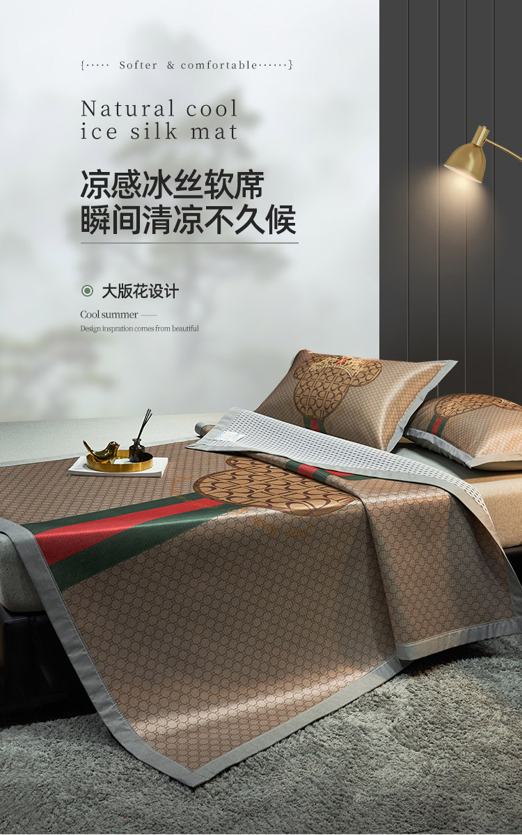 (总)21度C 2023新款数码印花大版冰丝凉席