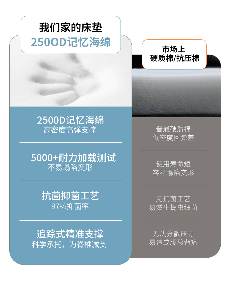 当前位置: 91家纺网 > 商品网购 > 床垫/床褥/床护垫 > 普通床垫 > 时奥 2023新款针织棉海绵慢回弹记忆床垫(学生床垫) 格调白