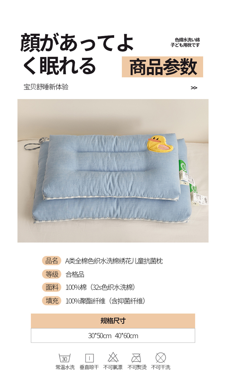 商品名称:(总)荷马之梦 2023新款全棉32s水洗棉绣花儿童枕芯宝宝枕头