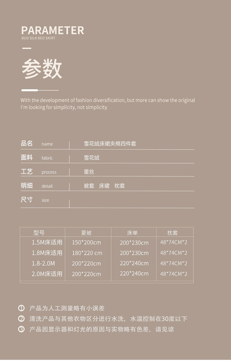 1.8m加大床裙款四件套(被套200*230cm床裙180*220cm枕套48*74cm*2) | ¥185.00 |