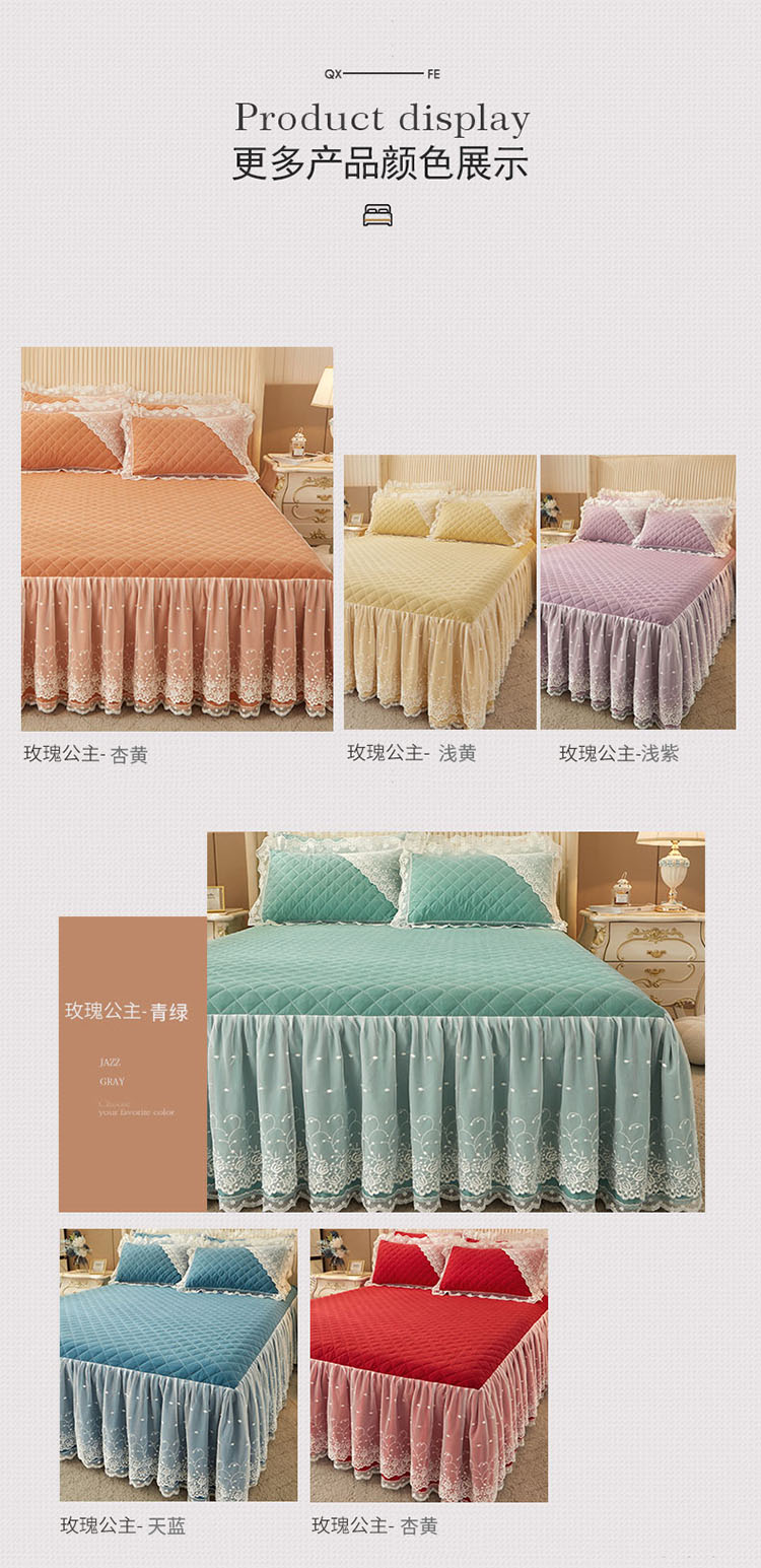 • 91家纺网 家纺一手货源 找家纺 (总)恋尚 2025新款柔软牛奶绒保暖蕾丝床裙四件套-玫瑰故事(控价305),玫瑰故事-蜜桃粉,玫瑰故事-奶茶色,玫瑰故事-椰蓉灰,玫瑰故事-香芋紫,玫瑰故事-清新粉,玫瑰故事-香草绿