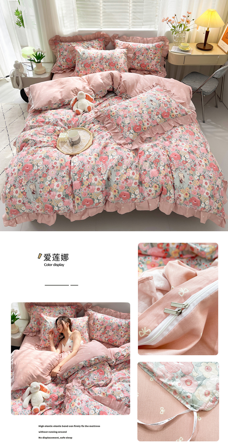 商品名称:简爱 2025新款13372韩版纯棉花边四件套 爱莲娜