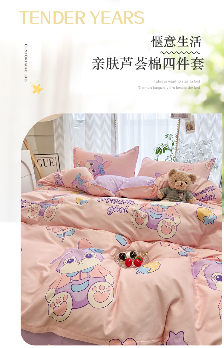 宏源家纺 2023年4月新款芦荟棉亲肤印花四件套 星黛兔