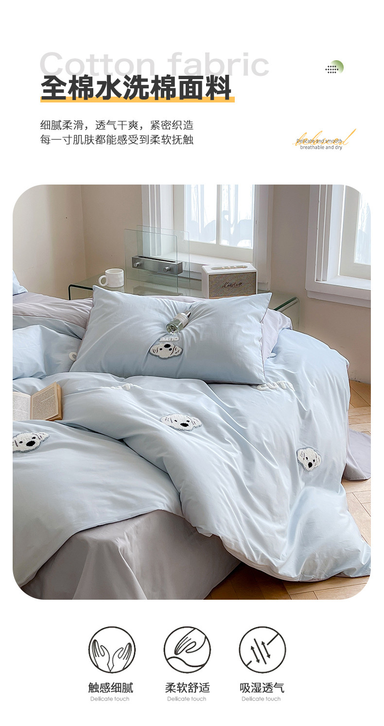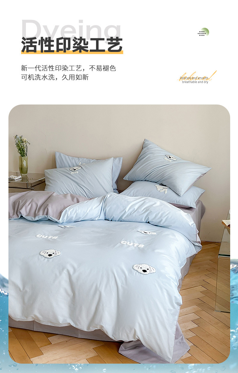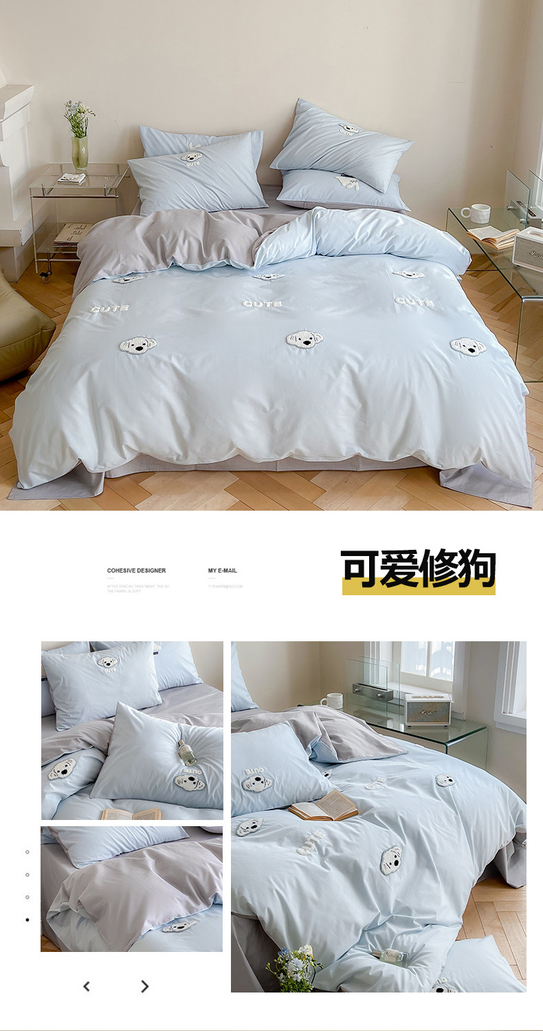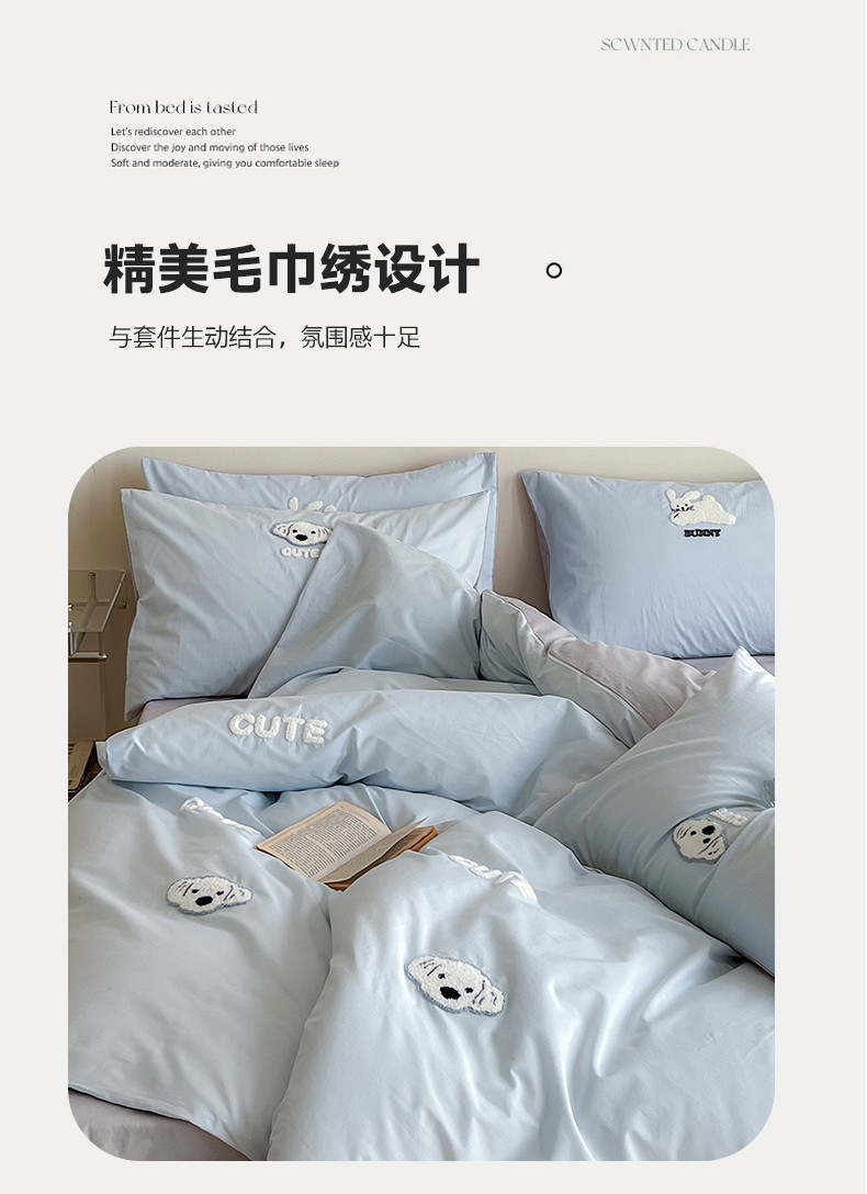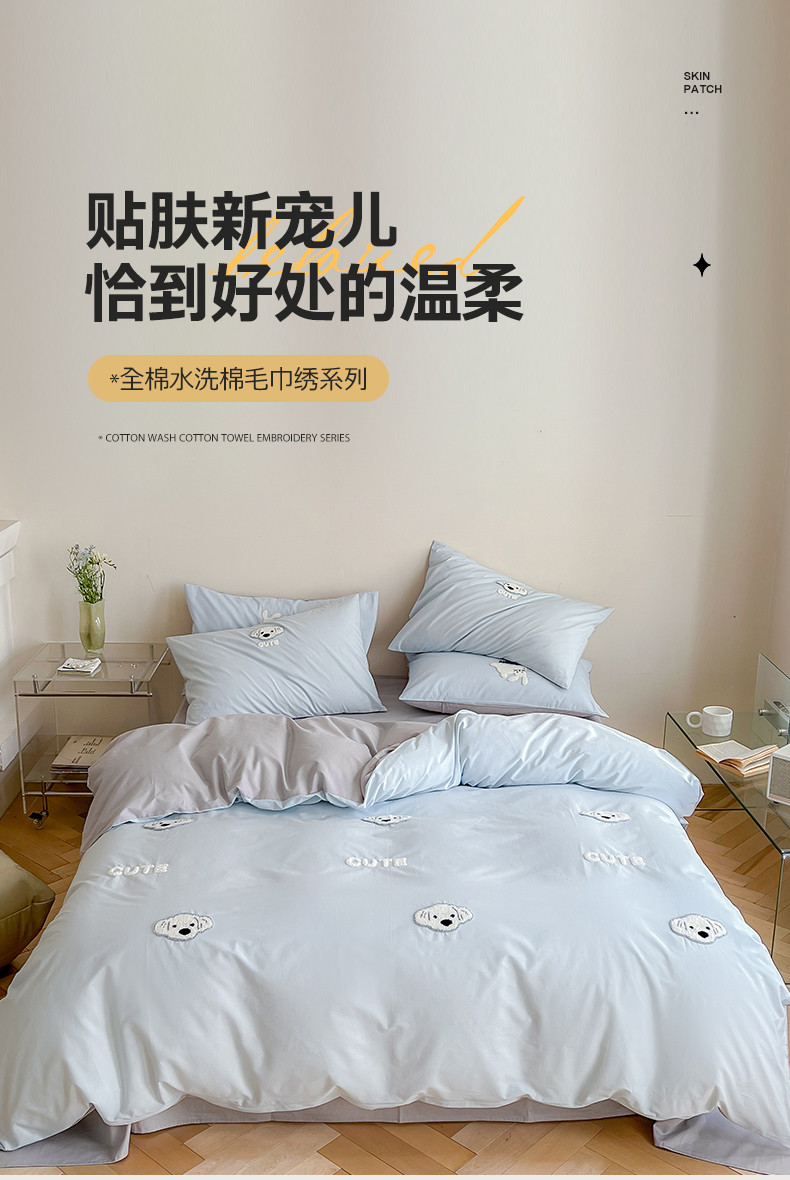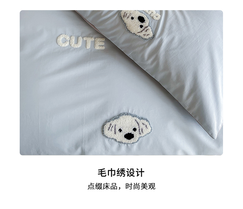当前位置: 91家纺网 > 商品网购 > 床品套件 > 四件套 > 全棉普通四件套 > 时年 全棉水洗棉毛巾绣系列 40水洗-可爱修狗