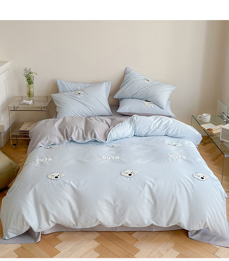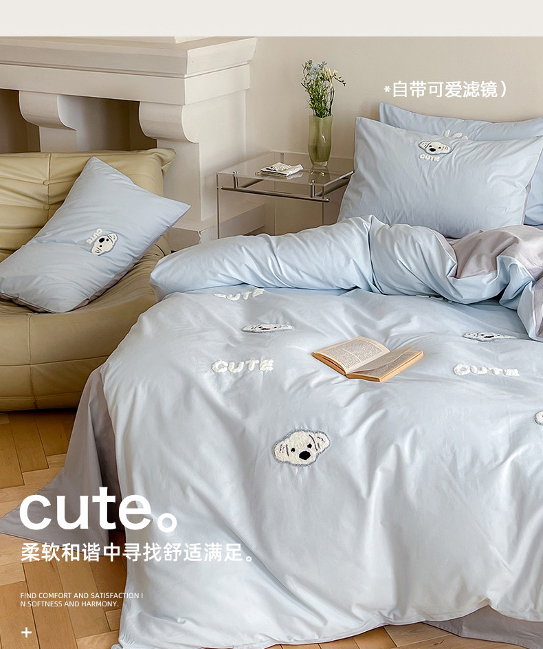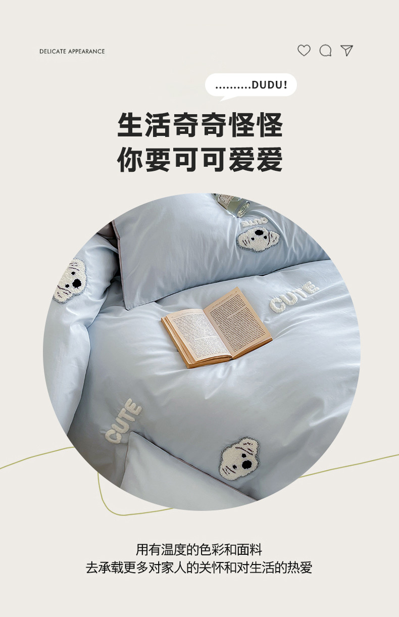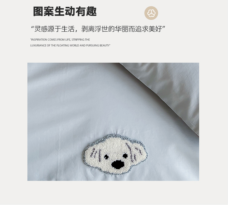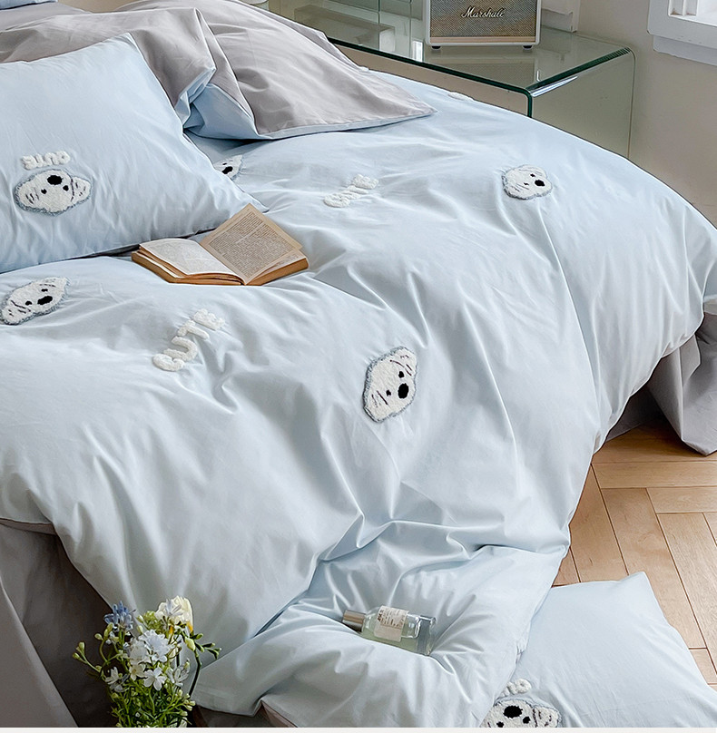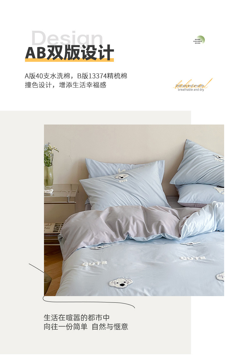 当前位置: 91家纺网 > 商品网购 > 床品套件 > 四件套 > 全棉普通四件套 > 时年 全棉水洗棉毛巾绣系列 40水洗-可爱修狗